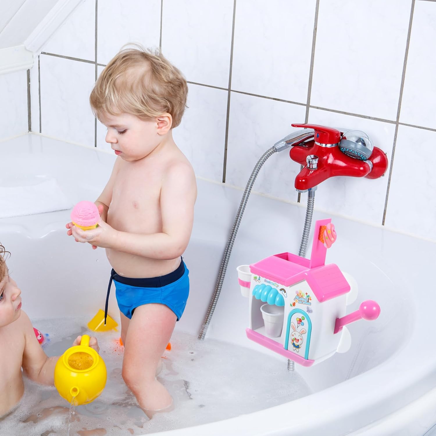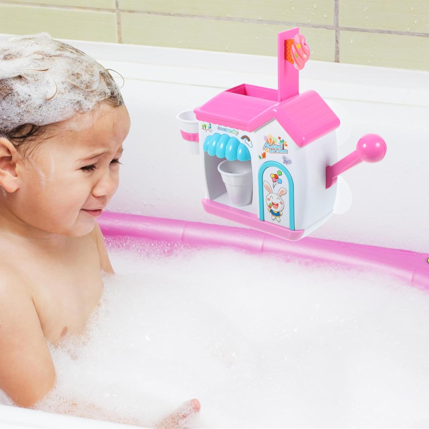 Macchine per bolle: con 4 ventose sul retro, può aspirare qualsiasi superficie liscia senza cadere, -Giocattoli per vasca da bagno, Giocattoli da bagno: fatti per e per l'uso, giocattoli per baby shower: può migliorare la buona abitudine del bambino di fare il bagno e lavarsi le mani, a, giocattoli per bambini Giocattoli da bagno: scuoti la maniglia e usciranno le bolle. Macchina per accessori da bagno: producendo gelati o bolle di sapone, è possibile migliorare la coordinazione occhio-mano dei bambini, macchina per bolle per il bagnetto