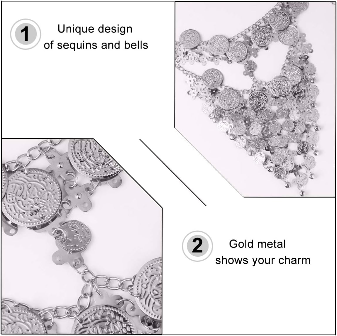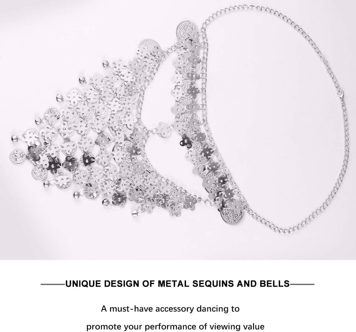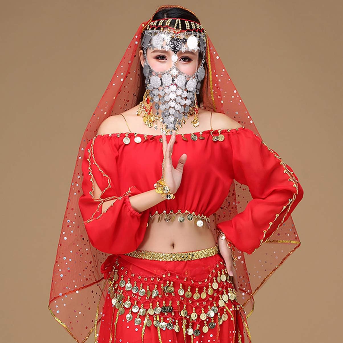 Accessori per capelli per feste di Halloween, cosplay, copricapo, bomboniere, feste, favor, programma perfetto di danza, prova, dress, performance, ecc. Il costume da velo da danza del ventre con un design unico di paillettes e campane ti renderà più attraente. Indossalo rapidamente per dimostrare il tuo fascino. Puoi usare Bobbypins per attaccarli ai tuoi capelli e fissarli sulla tua testa. Un must per ballare per aumentare le prestazioni visive. Questo velo ti fa sembrare misterioso e ti farà divertire alle feste.