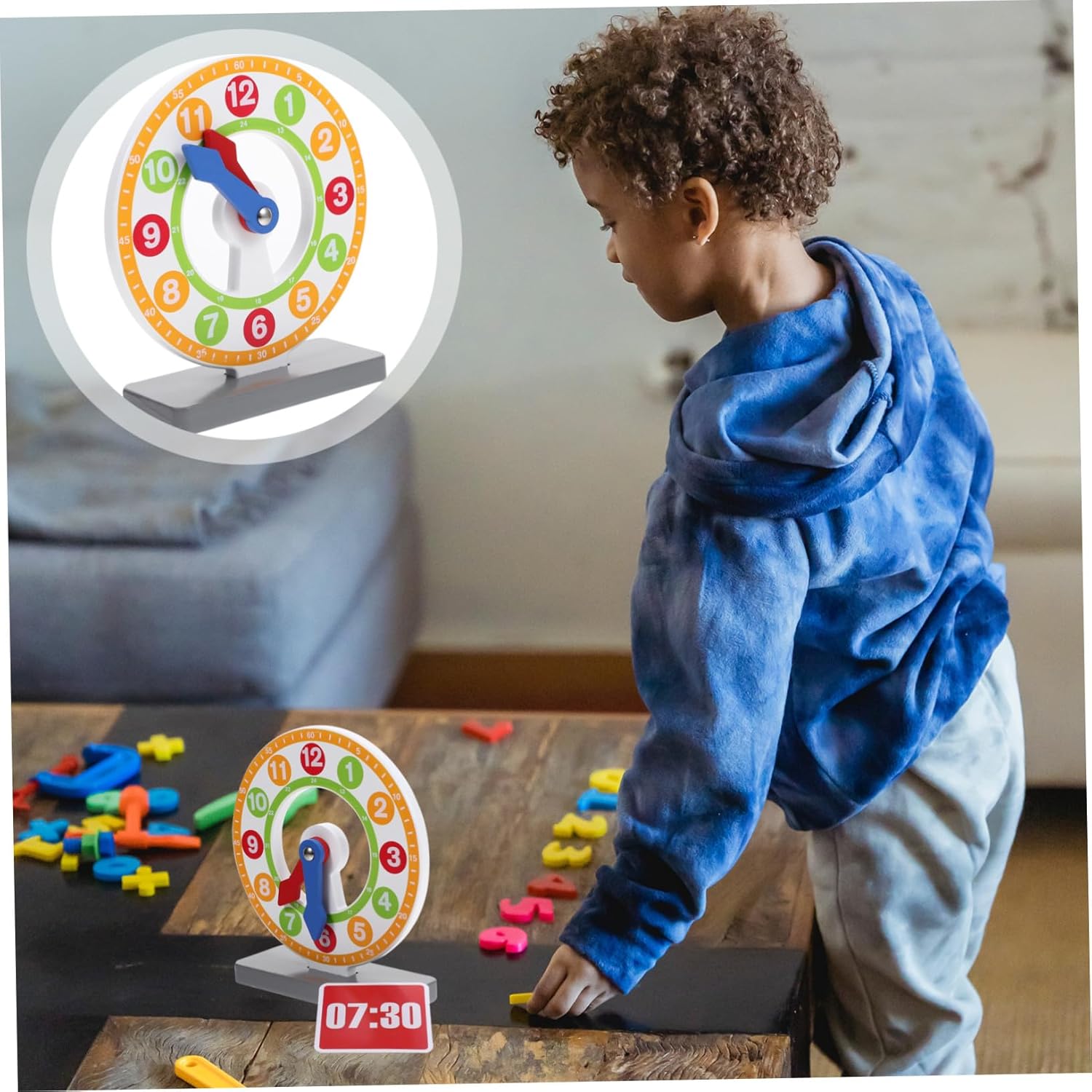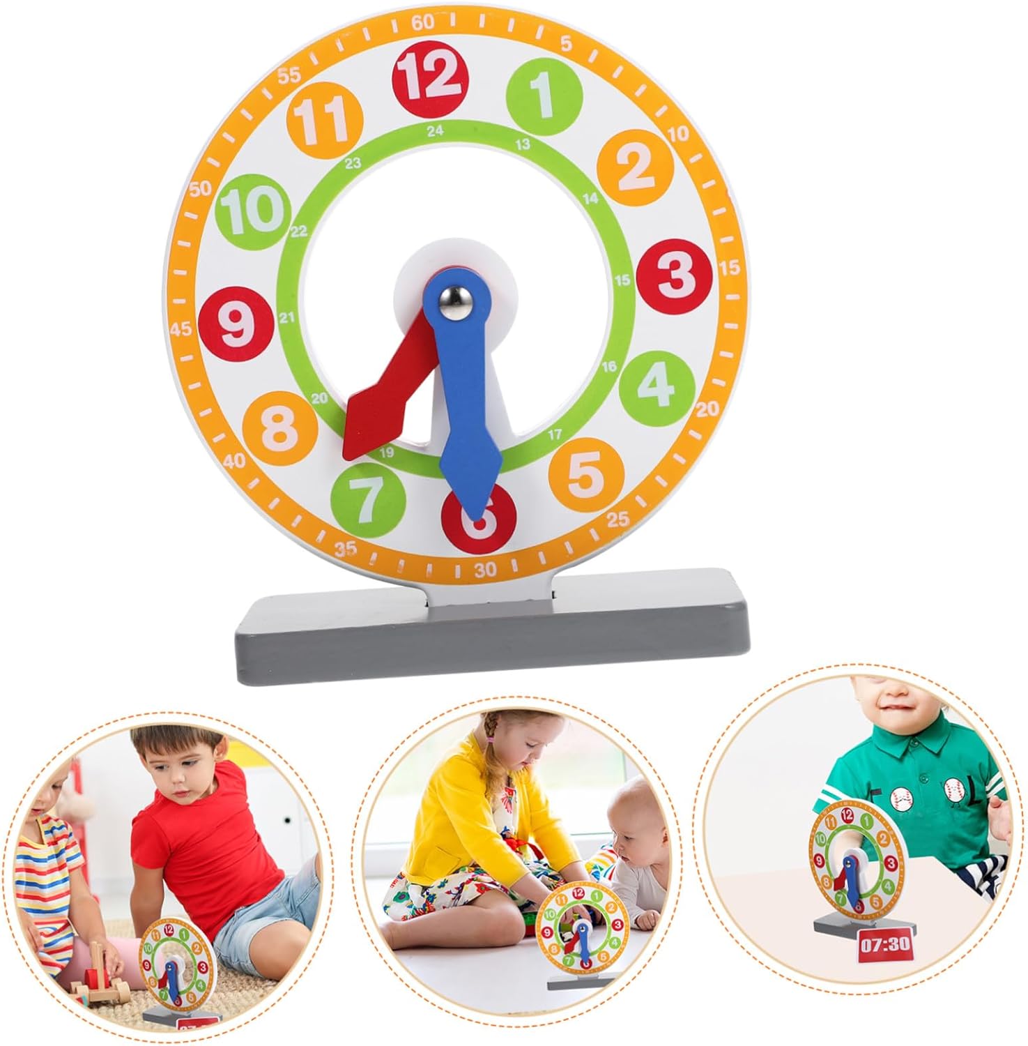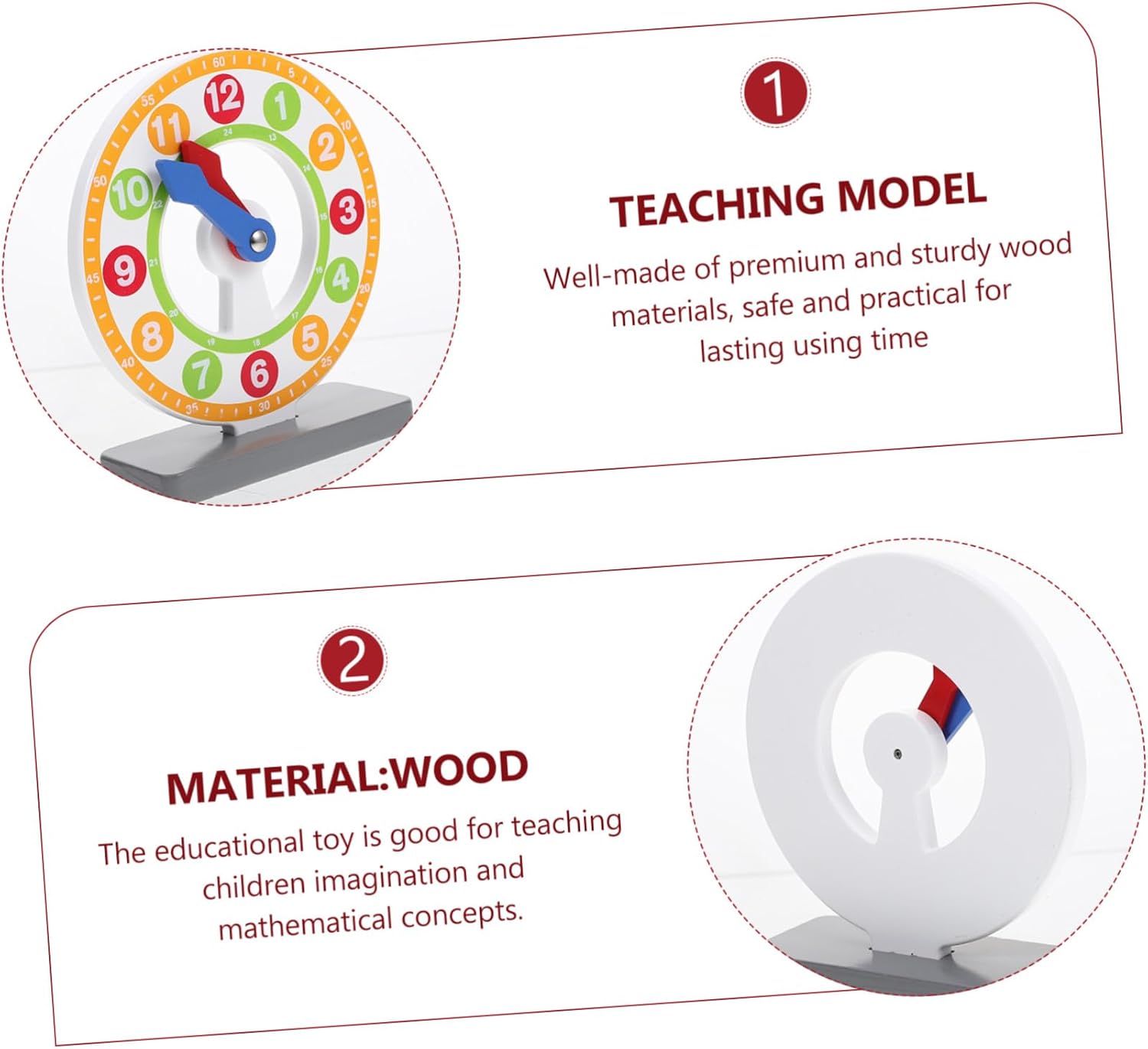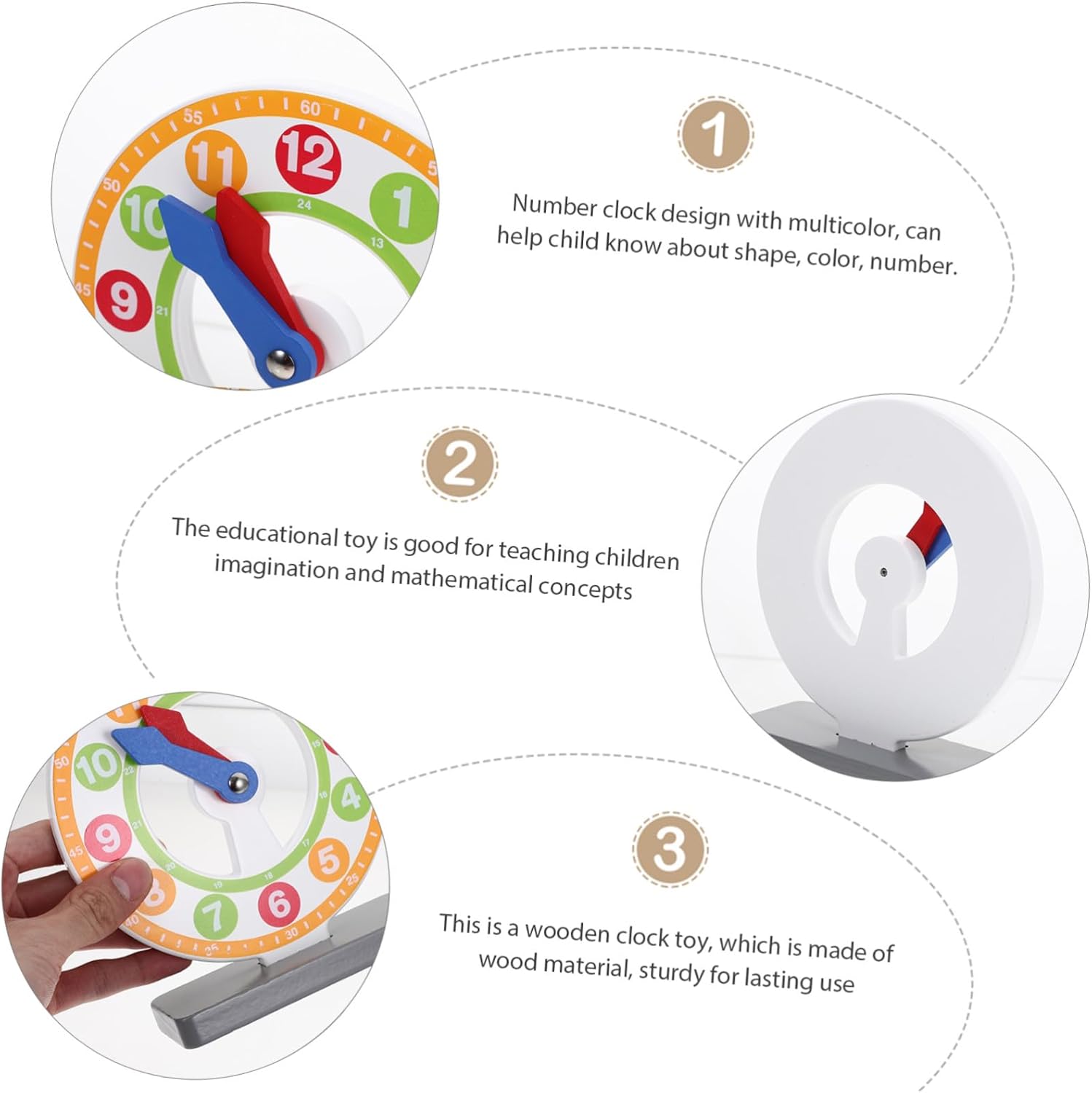 Giocattolo per l'apprendimento della matematica per: Il materiale in legno è più sicuro e adatto per, è educativo e pratico, un divertente orologio giocattolo Giocattolo in legno per il riconoscimento del tempo: i quadranti dell'orologio aiutano i bambini a leggere l'ora e a comprendere il significato del tempo in giovane età. Modello di orologio per bambini Pratico orologio giocattolo: meravigliosa scelta regalo per e amici e per promuovere lo sviluppo intellettuale dei bambini, apprendimento degli orologi per l'apprendimento della matematica: aiuta i bambini a conoscere i colori, i numeri e altre cose e promuove lo sviluppo intellettuale del bambino. Giocattolo per l'apprendimento cognitivo per l'orologio con riconoscimento del tempo: design dai colori brillanti e aspetto visivamente accattivante, bello e molto attraente per l'orologio in legno