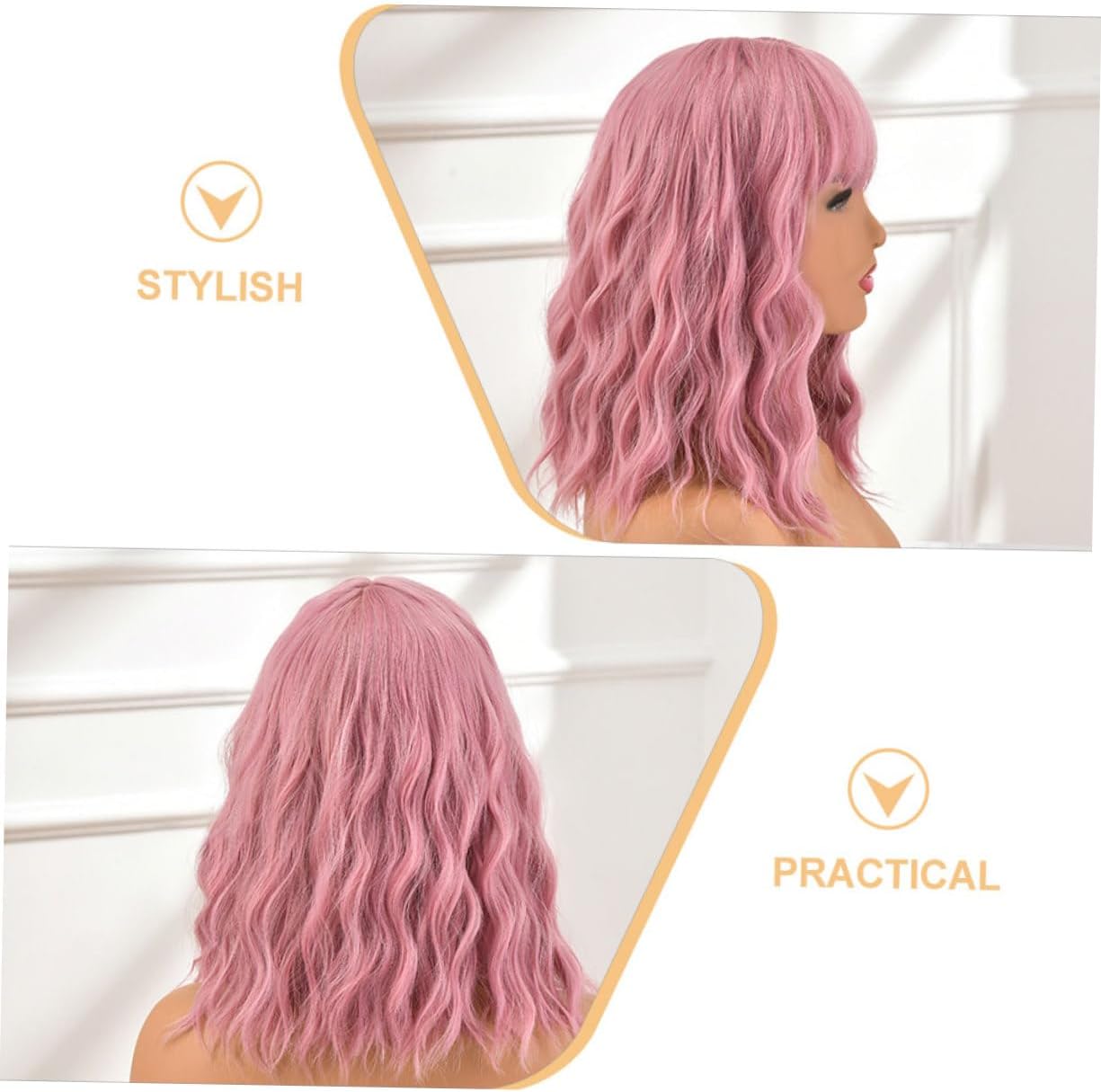 dei pacchetti 1 parrucca da cosplay Caratteristiche -Colore: Parrucche cosplay rosa -Dimensioni: parrucca ondulata 35,00X35,00X10,00 cm/13,76X13,76X3,93 pollici -Materiale: parrucche da festa in fibra ad alta temperatura per mascherate - Sarebbe un decorativo e carino per i tuoi amici, familiari, partner di ballo e altri simpatici finti. - Adatto per Halloween, cosplay, costumi, feste a tema, mascherate, balli di fine anno, serate fuori, carnevale, pesce d'aprile e qualsiasi occasione di festival con parrucche da cosplay. - La parrucca ha un aspetto chic e alla moda, attraente ed elegante e ti renderà la parrucca più affascinante delle feste. - La parrucca da festival può mettere meglio in risalto il tuo fascino e la tua personalità e può anche essere un buon accessorio fotografico per le feste. - Realizzata con materiali affidabili, la parrucca ondulata sarà durevole, pratica e affidabile per un uso prolungato di parrucche alla moda per feste. Informazioni sulle merci Parrucche per feste in maschera La parrucca Wave è realizzata in materiale stabile e affidabile, molto adatto per un uso a lungo termine. finti per le vacanze Puoi provare a cambiare i tuoi stili quotidiani, tranquilli, vivaci, adorabili, incantevoli e così via. Parrucche per feste La parrucca Wave da donna è adatta a tutte le occasioni
