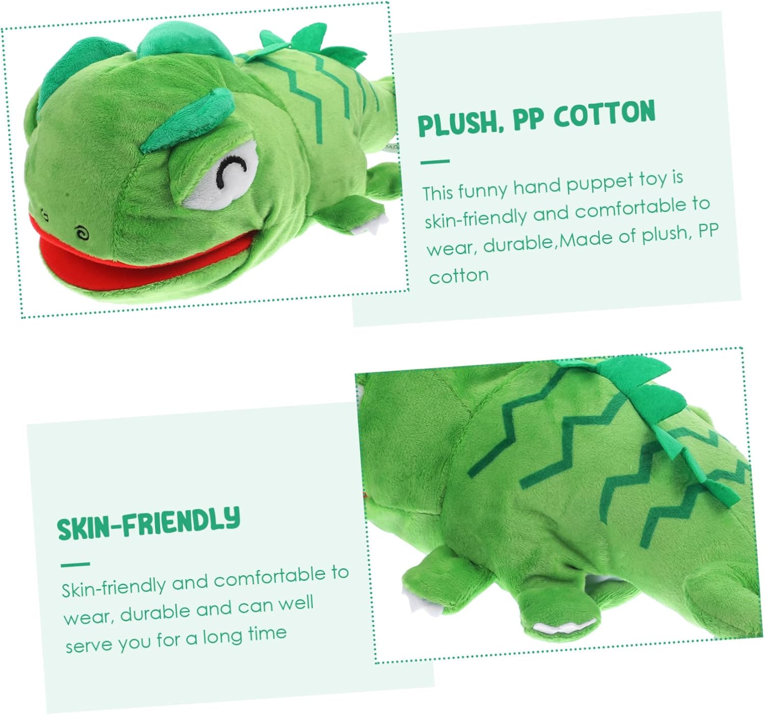 Bambole per bambini piccoli - con bocca mobile, questo pupazzo di peluche è così divertente che rende i bambini più gioiosi, bambola di peluche lucertola - può essere utilizzata all'asilo o a casa per lo sviluppo della prima infanzia, bambola di peluche Peluche lucertola - educativo, può intrattenere i tuoi. Accompagna tuo figlio mentre lo usi per migliorare la relazione genitore-figlio, giocattoli per bambini Giocattoli di peluche portatili: questo peluche burattino a mano è così interessante che può facilmente attirare l'attenzione del tuo bambino, peluche burattino a mano Peluche lucertola - il burattino a mano è fatto di buon materiale, non facile da sbiadire o rompersi, lunga durata, burattino da dito