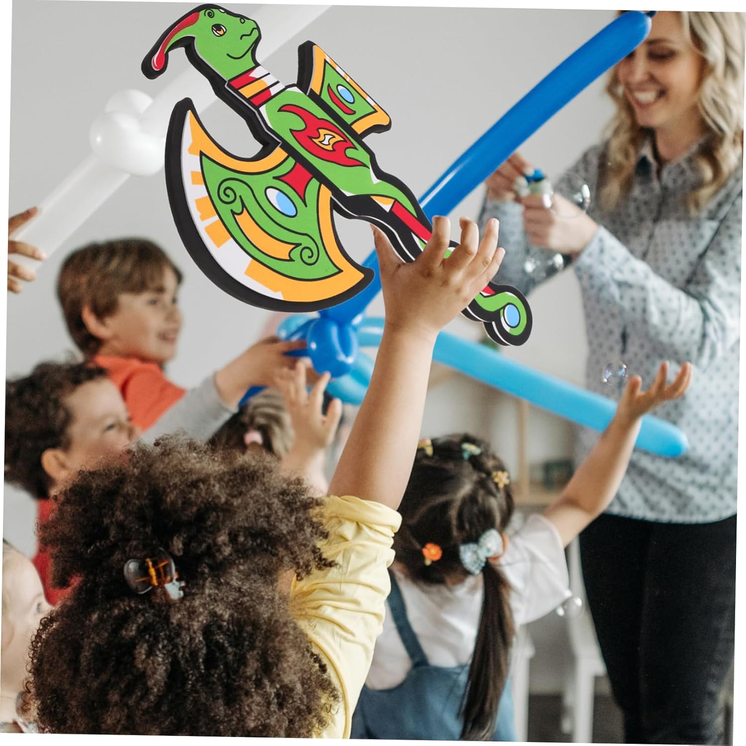 Adorabile design del dinosauro: l'adorabile design del dinosauro dei cartoni animati sarà sicuramente ben accolto dai bambini e renderà il loro tempo di gioco più piacevole. Materiale morbido e sicuro: realizzato in morbida schiuma, questo giocattolo è sicuro per far giocare i bambini e offre ai genitori tranquillità. Ideale per feste e cosplay: questo giocattolo è ideale per feste e cosplay, aggiungendo un elemento di divertimento ed eccitazione a qualsiasi evento. Leggero e portatile: il design leggero e portatile del giocattolo rende facile per i bambini trasportarlo e giocarci ovunque. Promuove la creatività: incoraggia la creatività e l'immaginazione dei bambini e li incoraggia a inventare le proprie storie e avventure.