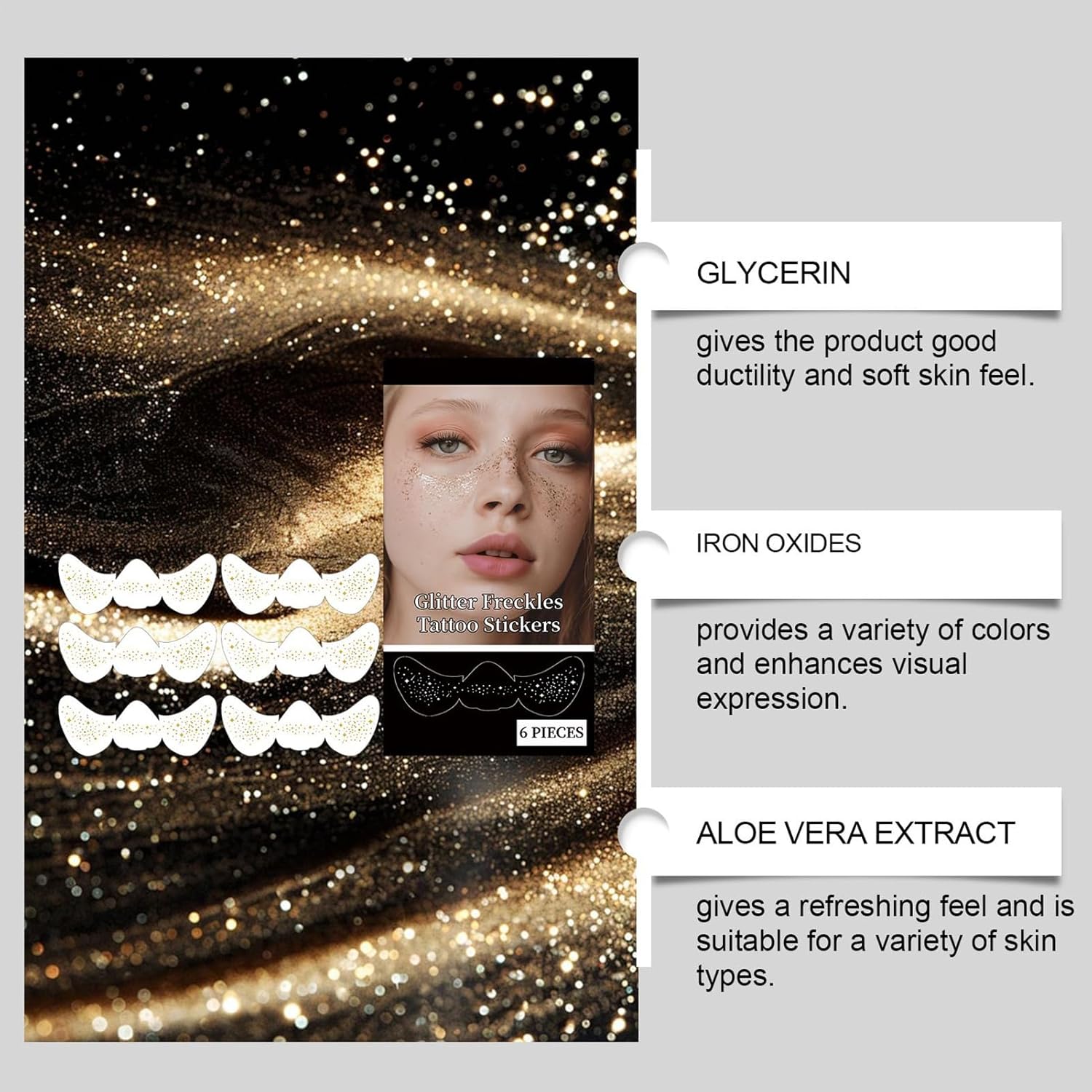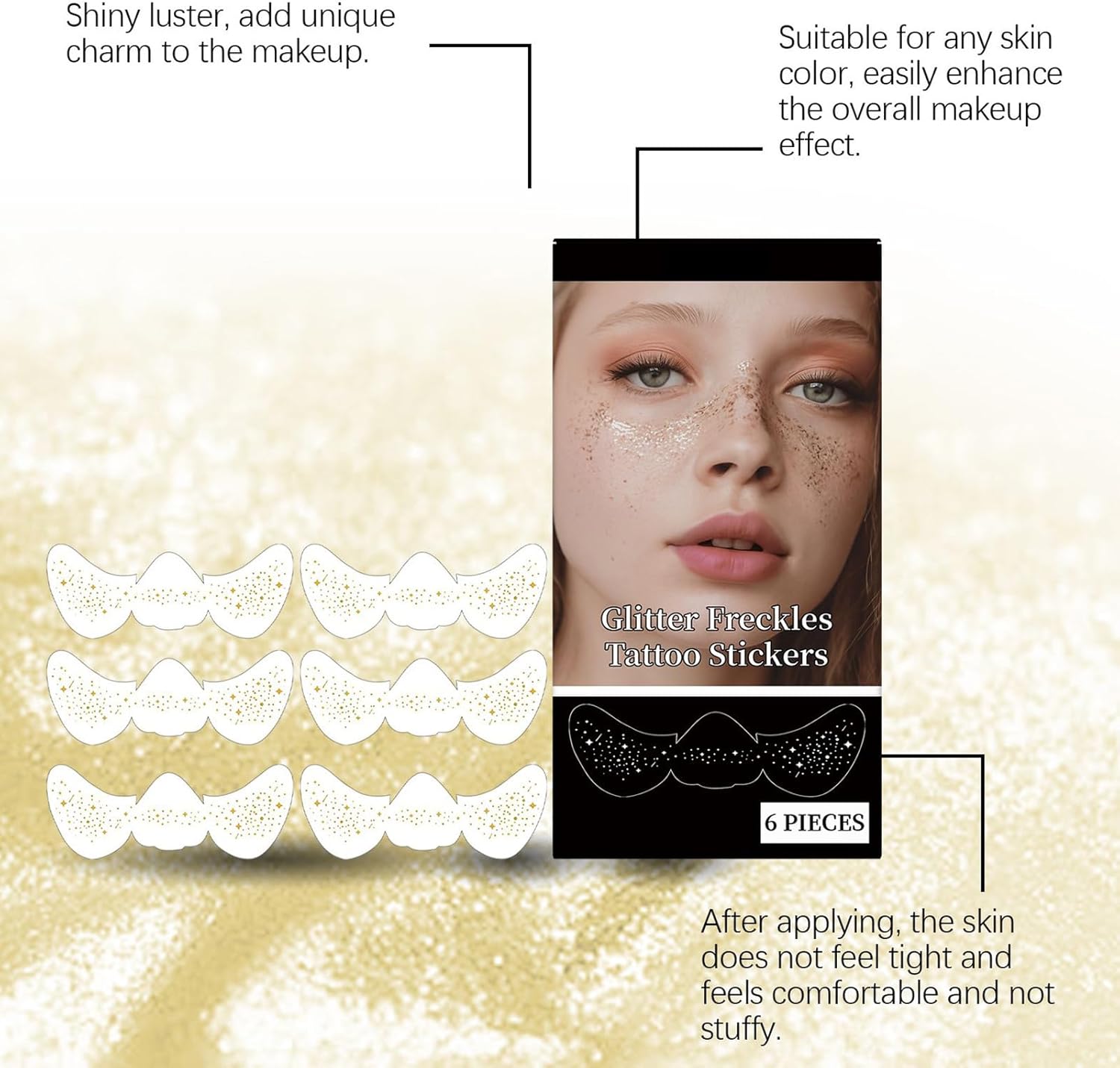 Sweat-proof Wear: Combining motion-proof stability and moisture resistance, this Freckles Face Tattoo leverages advanced glitter adhesion and waterproof coating technologies to maintain its appearance for extended periods Style Versatility: Effortlessly mix creative patterns for aesthetic designs, adapting to themed events with adjustable shape and density control for versatile tattoo styling options Convenient to Use: Achieve a captivating appearance using the quick application process of Freckles Face Tattoo, featuring a peel-and-press method that ensures consistent pressure and improves efficiency during use Consistent All-day Performance: Enjoy sweat-proof durability paired with friction-resistant stability, improved by high-strength adhesive for prolonged freckles face tattoo wear High-quality Material: Formulated with a safe formula, this freckles face tattoo ensures all skin types applicability and extended wear comfort while conforming seamlessly to facial contours for a natural look without irritation