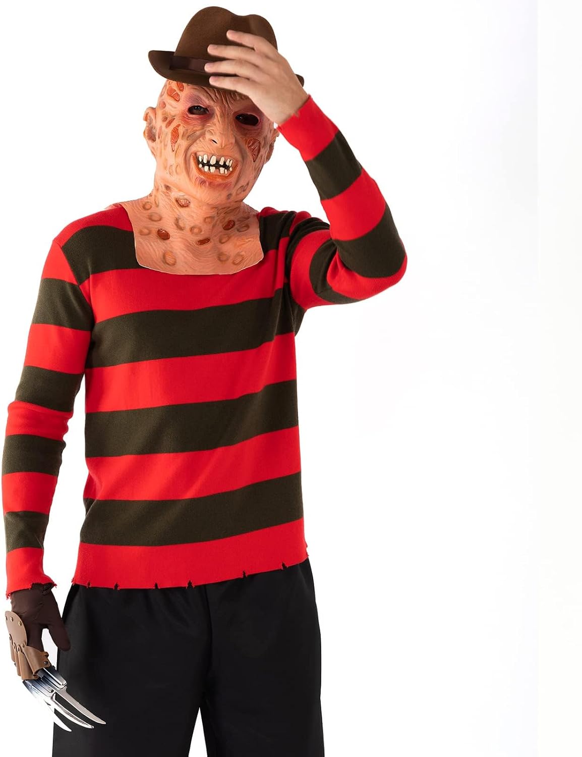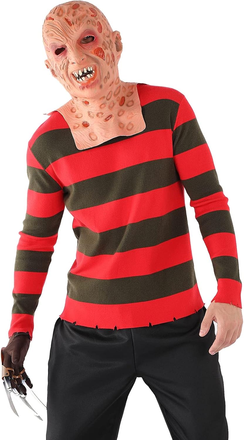 An sich die Bilder sehen gut aus. Das kostüm allerdings aus der nähe absolut nicht... *Unförmiger Kopf* Die Krallenhand ist eigentlich cool wobei sie auch nur n billiges unpassenden Ding ist! Die 2 Sterne nur verdient da das dünne Oberteil hübsch und ohne die normal üblichen löcher ist... (59,99€ für einen Dünnen Pully scheint mir allerdings etwas viel) Für unter die Lederkombi taugt er ????️????