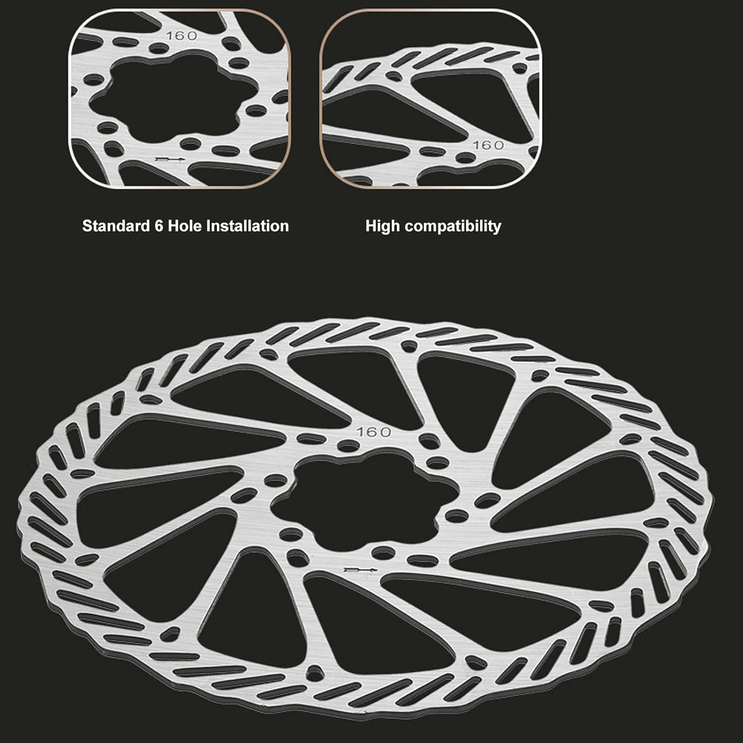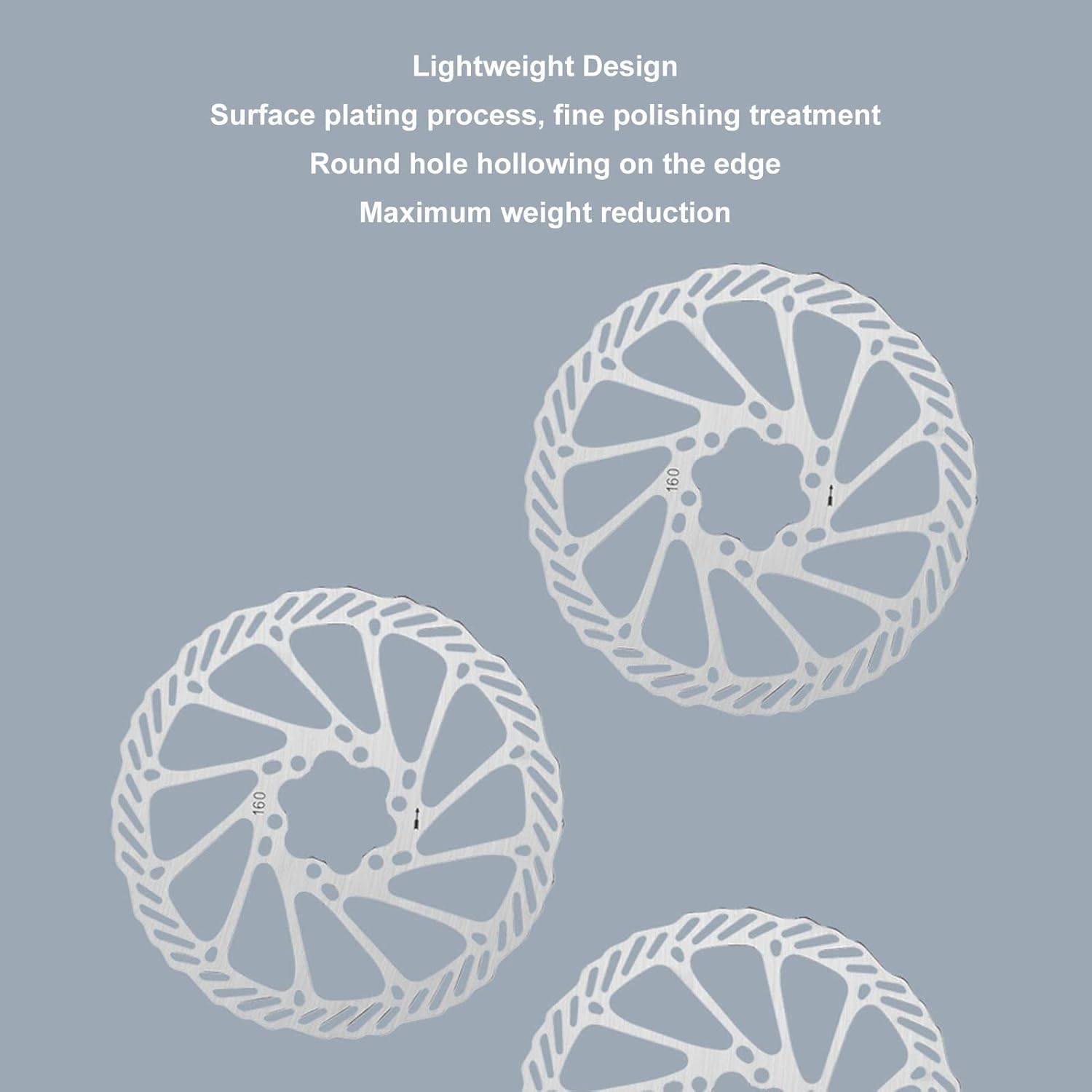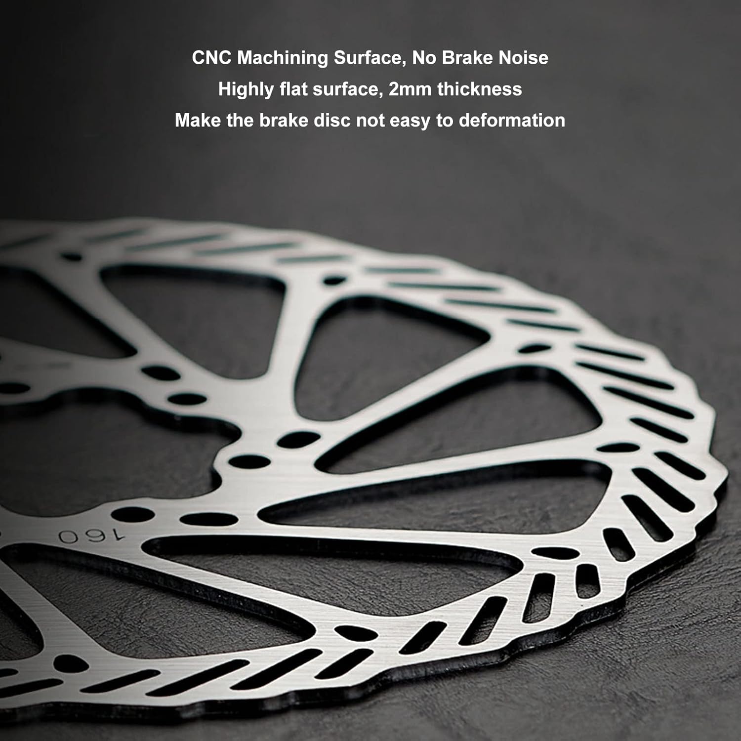 Per il freno a disco della bici: materiale in acciaio inossidabile, acciaio resistente alla corrosione e audace, ad alta resistenza. Per un artigianato raffinato: freno a disco in titanio lucidato. Finitura resistente alla corrosione ed elegante. Processo di rivestimento sotto vuoto per una maggiore durata. Per dischi freno: elevata planarità con spessore 2 mm. Prestazioni stabili. La superficie lavorata a CNC riduce il rumore e resiste alla deformazione. Per pastiglie dei dischi freno. Caratteristica: design del bordo cavo inclinato intenso per un migliore attrito e prestazioni di frenata affidabili. Per accessori professionali: freno a disco cavo leggero. Materiale: acciaio di alta qualità. Caratteristiche: Frenata veloce e ottimo reparto termico. Adatto a diversi tipi di bici.