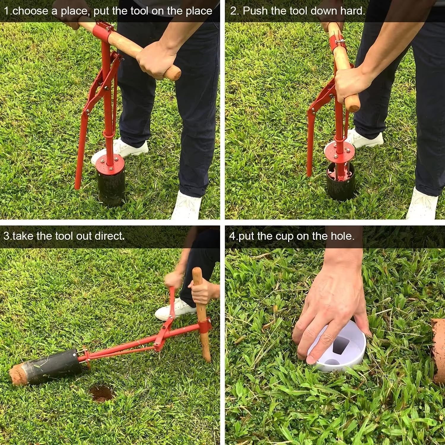 【Taglio di buche da golf rapido e preciso】: crea facilmente buche da golf di dimensioni regolamentari da 115 mm a mano, perfette per la preparazione di putting green, il golf in giardino o le sessioni di allenamento a casa. Essenziale per qualsiasi appassionato di golf che desideri allenarsi con precisione. 【Stabilità in acciaio incrollabile】: scopri scavo senza oscillazioni grazie alla nostra struttura in acciaio inossidabile rinforzato. La lama in acciaio inossidabile mantiene una rigidità perfetta, tagliando in modo netto le radici del manto erboso senza piegarsi o deformarsi, per fori perfetti e lisci ogni volta. 【Impugnatura confortevole】: Presenta un'impugnatura in legno massello che offre una presa e un controllo superiori, riducendo lo sforzo durante l'uso ripetuto. Progettata per offrire comfort e durata, la sua forma liscia e sagomata riduce lo sforzo della mano, consentendo di creare comodamente più buche sul putting green. 【Costruzione robusta】: Progettata con viti e acciaio resistenti alla corrosione, questa taglierina vanta una resistenza corazzata. Resiste all'uso ripetuto in terreni umidi, zone rocciose o bunker sabbiosi anno dopo anno. Ideale sia per l'allenamento personale che professionale. 【Un partner affidabile per il golf】: Il design pieghevole consente una facile conservazione e trasporto. Ripiega la perforatrice e portala sul campo da golf all'aperto per scavare la buca nel green, quindi posiziona il contenitore per le buche da golf sulla buca per iniziare una piacevole partita di golf all'aperto.