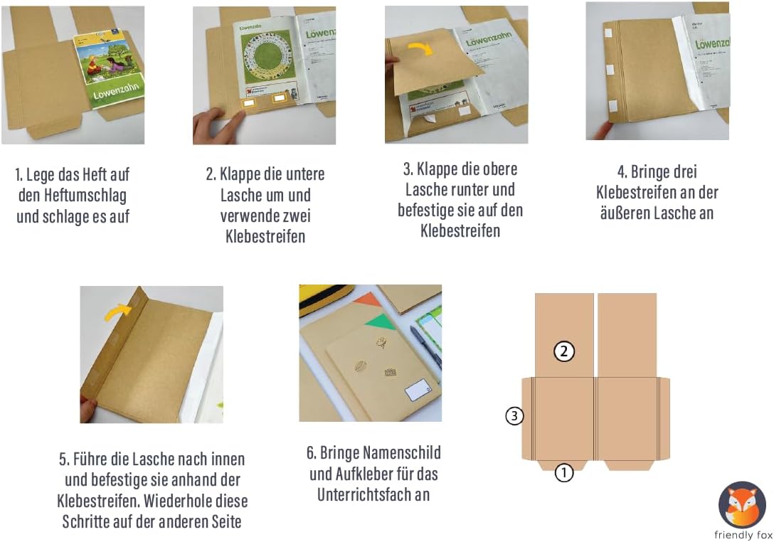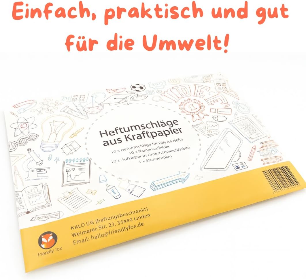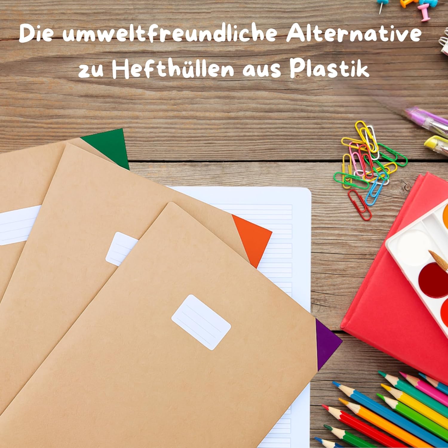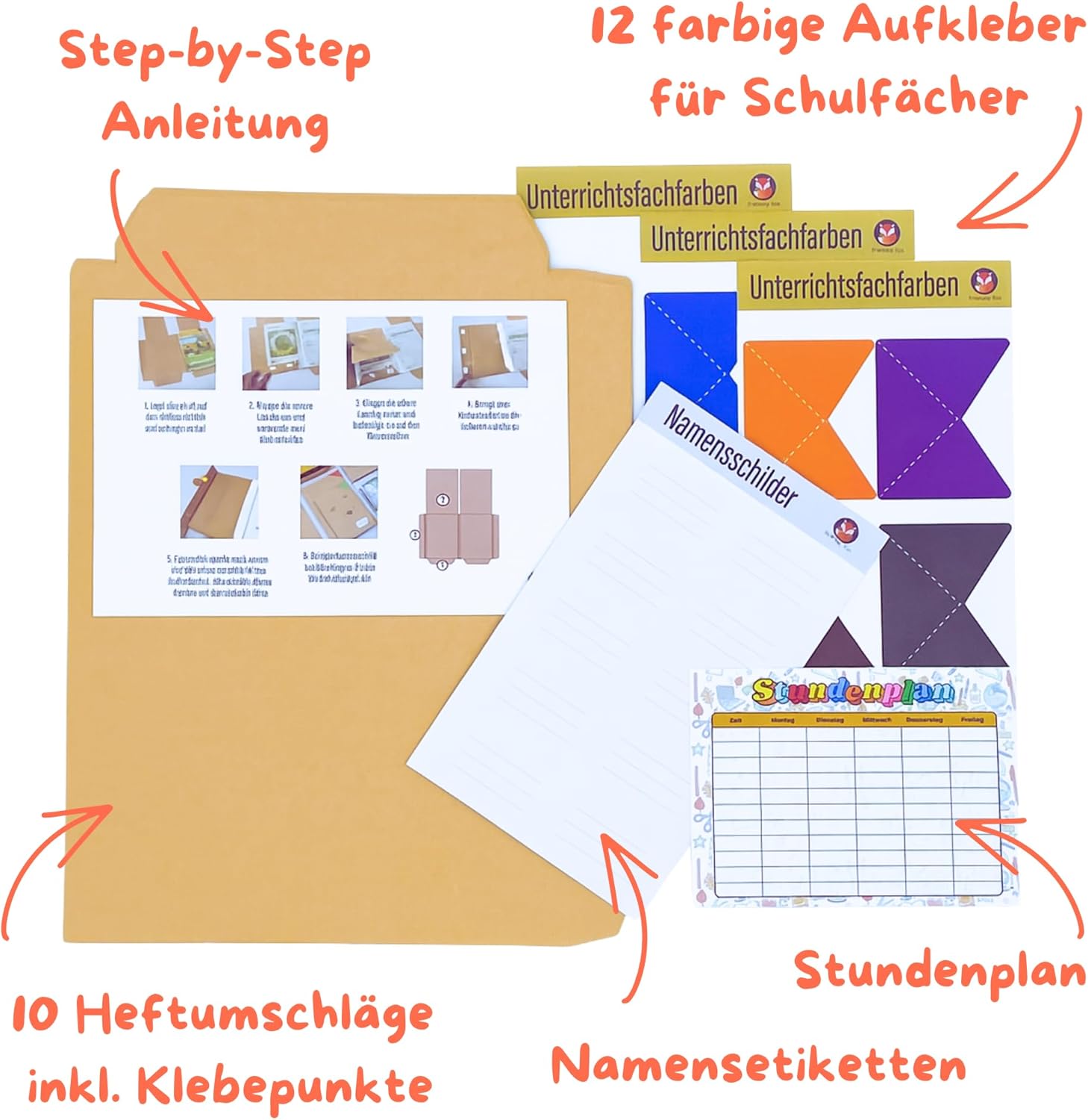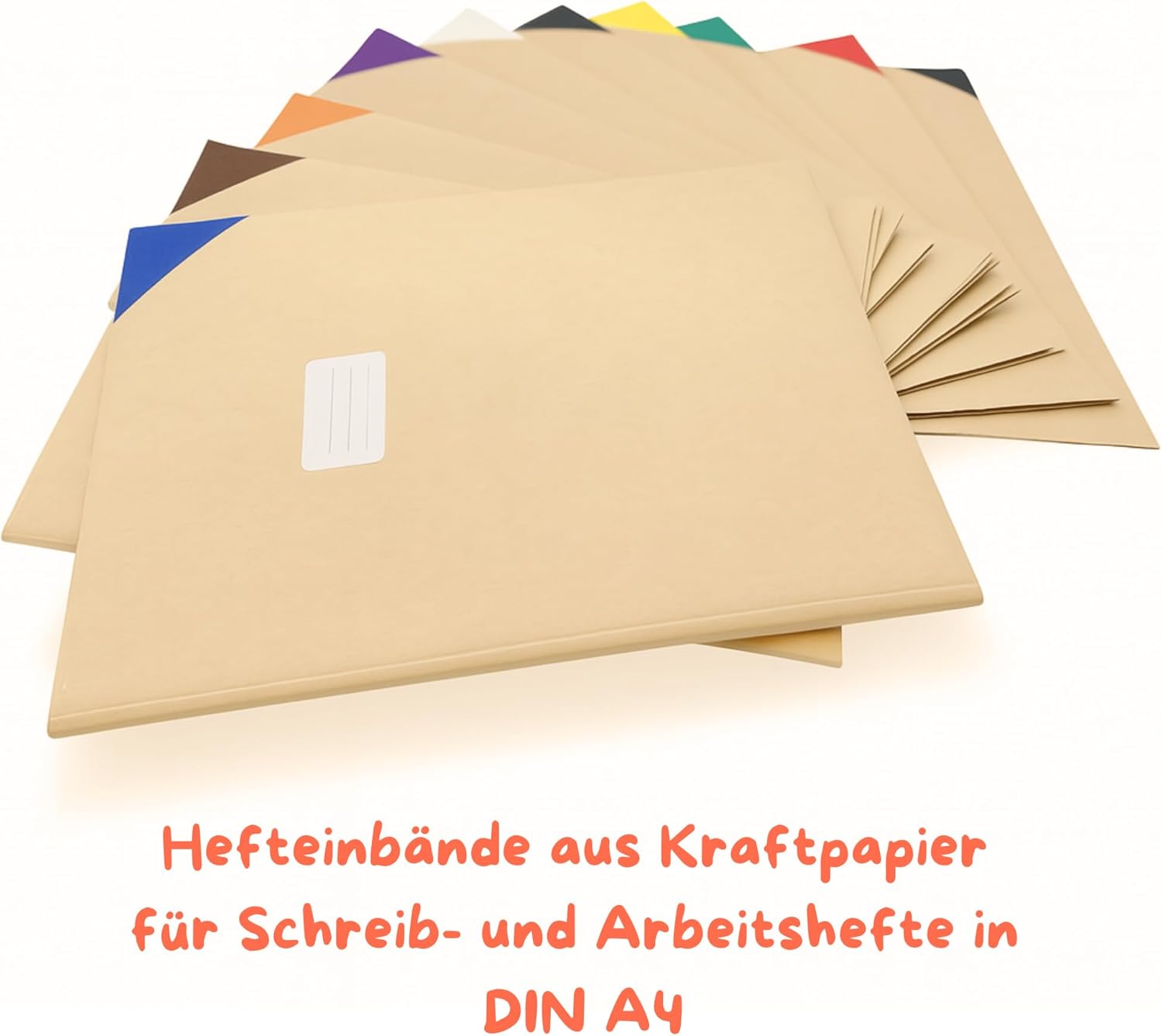 Materiale resistente: la copertina per quaderni in carta kraft di alta qualità (115 g/m²) offre una protezione ottimale per quaderni A4 e libri scolastici come alternativa sostenibile alla plastica Tecnologia pieghevole flessibile: il design adattabile consente l'uso per diversi spessori con facilità d'uso – posizionare il quaderno, piegare le linguette, fissare Pratico codice cromatico: adesivi colorati per distinguere chiaramente gli argomenti scolastici, adesivi vuoti aggiuntivi per personalizzare i colori Design personalizzabile: i campi per il nome personalizzati e le molteplici possibilità di decorazione rendono ogni copertina un pezzo unico Set completo: 10 copertine per quaderni fai da te in carta kraft, con punti adesivi per il fissaggio, etichette per nome e adesivi colorati