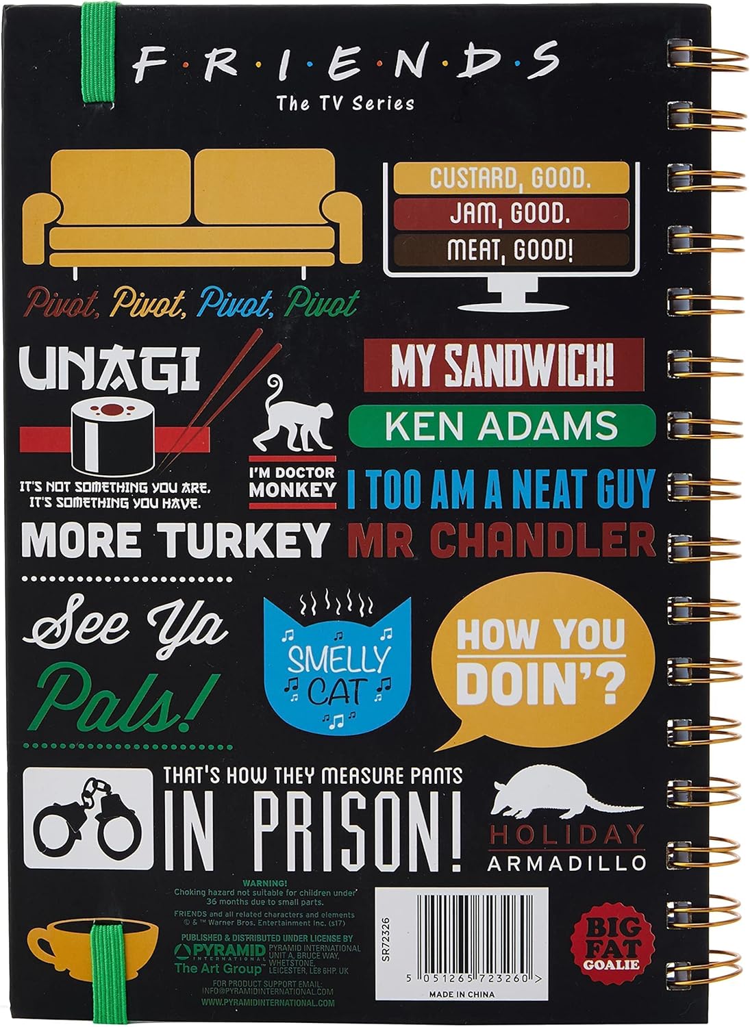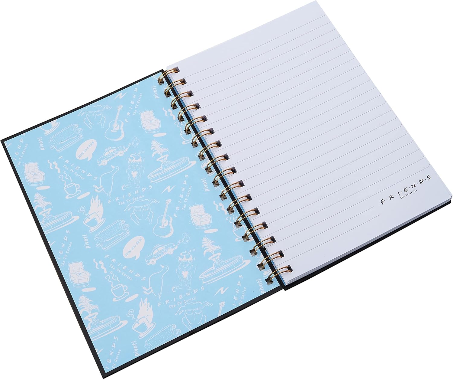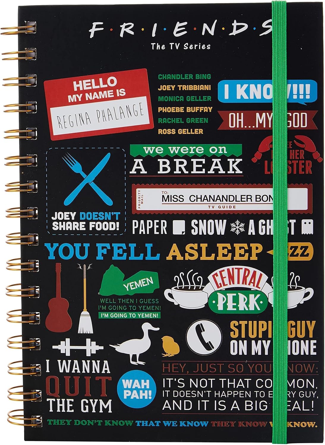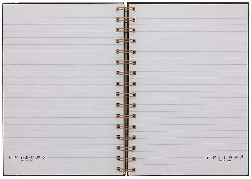 BLOCCO NOTE PER DIARIO CON COPERTINA RIGIDA DI ALTA QUALITÀ - con una cinghia elastica per tenerlo chiuso e pagine a righe spesse, per tenere un diario, annotare ordini di caffè o scrivere elenchi di pro e contro di potenziali partner PRESENTA ALCUNE DELLE CITAZIONI DEI MIGLIORI AMICI - tra cui le grida di Janice di Oh...mio...Dio!, la teoria dell'anima gemella di Phoebe Sei la mia aragosta, la famosa frase di Ross, Eravamo in pausa e la battuta di Joey, Joey non condivide il cibo MOSTRA I SIMBOLI DELLO SPETTACOLO - La chitarra di Phoebe che usa per scrivere ed eseguire Smelly Cat e la scopa che Old Man Heckles usa per sbattere contro l'appartamento di Monica e Rachel quando sono troppo rumorosi, così come il logo immediatamente riconoscibile di Central Perks e altro ancora OTTIMO REGALO PER AMICI FAN DI TUTTE LE ETÀ - chiunque ami le scappatelle romantiche degli amici affiatati apprezzerà questo taccuino che evoca il loro invidiabile stile di vita a Manhattan degli anni '90 ORIGINALE FRIENDS MERCHANDISE - basato sulla sitcom di lunga data della NBC con protagonisti i coinquilini Rachel e Monica, suo fratello Ross e gli amici Phoebe, Chandler e Joey, ufficialmente approvato dai Warner Bros Studios