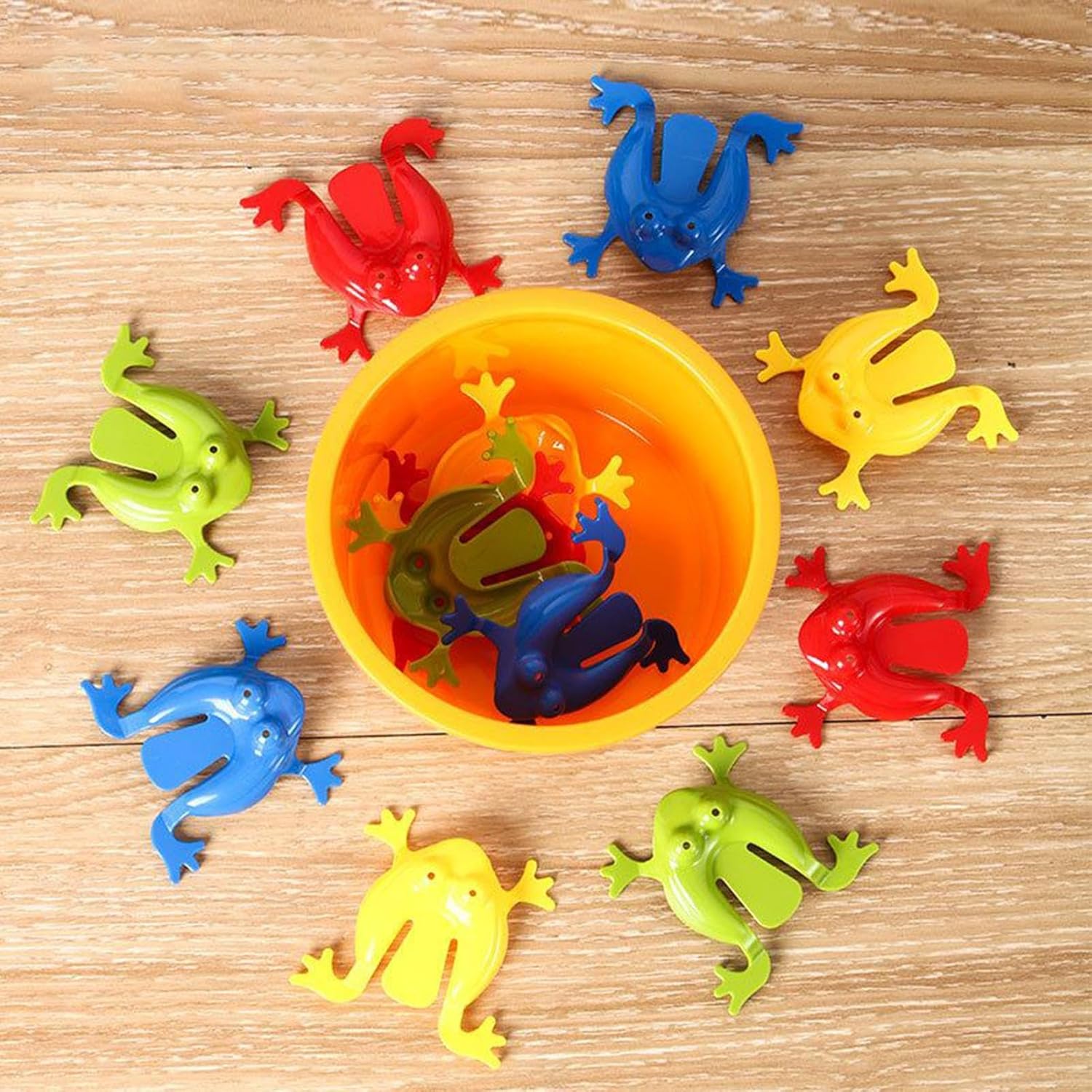 Fun Interactive Game: This jumping frog toy set brings laughter and excitement as kids press the frogs and watch them hop. Perfect for parties, playdates, or indoor activities, it encourages and imaginative play. Educational and Engaging: A simple yet effective way to develop hand-eye coordination, focus, and fine motor skills while keeping children entertained during travel, school breaks, or home playtime. Durabled and Safe Material: Made from , child-safe designed for long-lasting fun. Lightweight and smooth-edged, making it safe for preschoolers and to handle. Perfect Party Favor: Ideal for birthday parties, Easter baskets, classroom rewards, or holiday giveaways. Compact and colorful, these mini frog toys are loved by both boys and girls. Portable Travel Toy: Each frog is easy to carry, providing quick entertainment during trips, car rides, or family outings. A playful and educational companion for kids wherever they go.