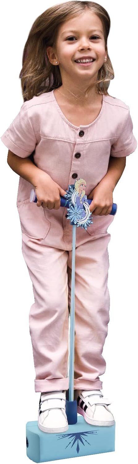 Gioco semplice, divertente e sicuro per accompagnare i piccoli nello sviluppo motorio Migliora le capacità di equilibrio e coordinazione Riproduce un suoni buffo ad ogni salto Sofficissimo e sicuro fuori e dentro casa Impreziosito da Elsa di Frozen a rilievo 3D sul manubrio!