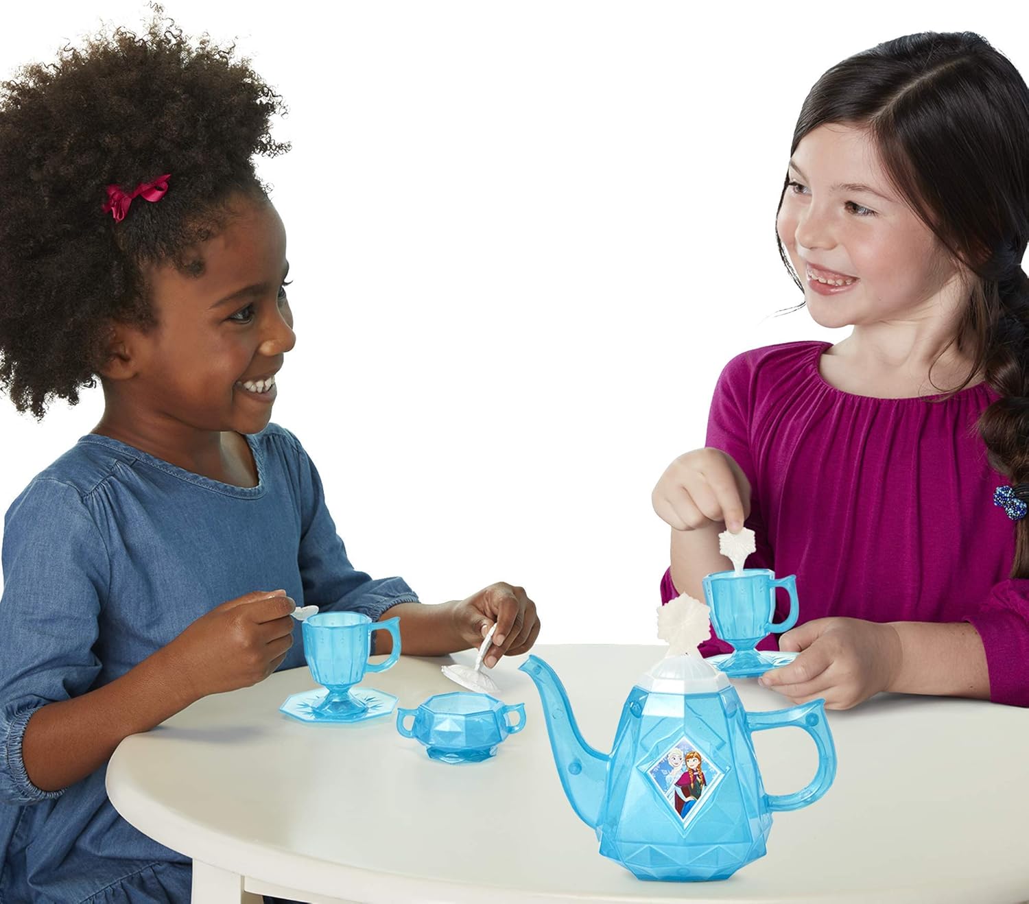 Set da tè per due persone. Dettagli glitterati come cristallo. Viene fornito con 10 pezzi per la perfetta festa del tè Frozen Include: 1 teiera con coperchio, 1 zuccheriera con coperchio, 2 tazze da tè, 2 piattini, 2 cucchiaini Consigliato per bambini dai 3 anni in su.