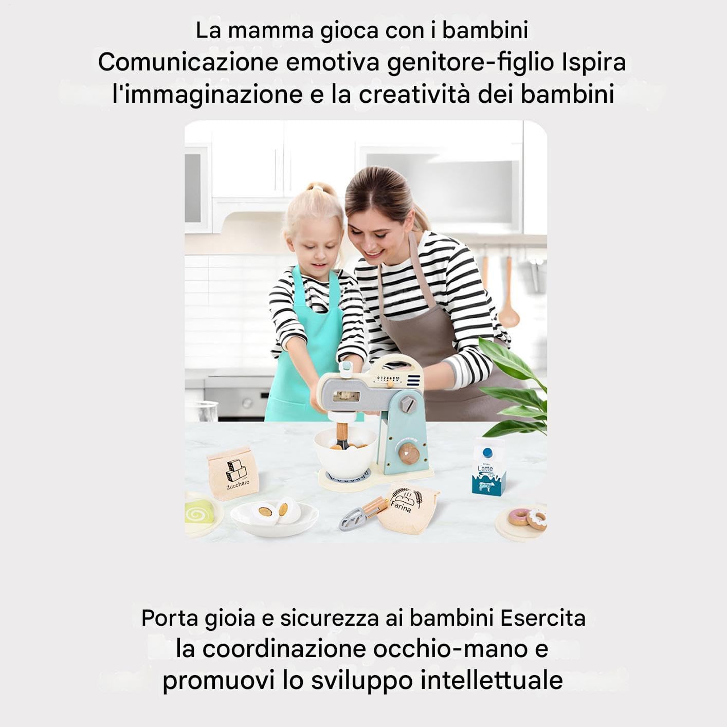 Sostenibile e Robusto: La costruzione in legno sostenibile assicura integrità strutturale rinforzata per un gioco sicuro. Il design robusto previene rotture rispettando rigorosi requisiti di sicurezza per lo sviluppo motorio attraverso attività di pasticceria immaginativa. Boost Apprendimento: Favorisce esplorazione creativa con funzioni di miscelazione realistiche, sviluppando abilità pratiche attraverso il gioco tattile. Coltiva curiosità per le basi della cucina supportando crescita cognitiva e coordinamento in esperienze ludiche Set Interattivo: Migliora il gioco simbolico con kit completo di frullatore, scatola latte, repliche uova e utensili. I bambini seguono passaggi di preparazione cibo, imitando routine di cucina degli adulti per sviluppare capacità motorie e fiducia in cucina in ambiente sicuro e divertente Estetica Brillante: Offre una simulazione da cucina fedele alla realtà. Finiture lucenti e simmetria garantiscono fascino visivo, accendendo il gioco immaginativo prolungato ad ogni utilizzo nel mondo della cucina giocattolo. Archiviazione efficiente: Frullatore giocattolo compatto offre esperienze immersive occupando spazio minimo. Costruzione ready per viaggi permette creatività culinaria in campeggio, feste o avventure domestiche, trasporto semplificato con maniglie e scomparti.