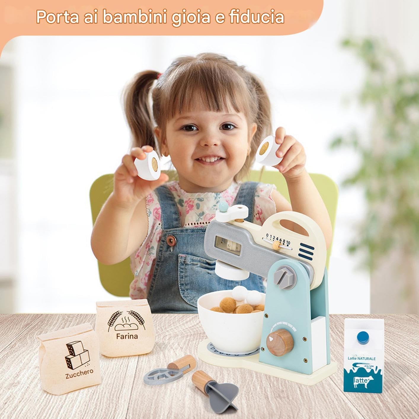 Sostenibile e Robusto: La costruzione in legno sostenibile assicura integrità strutturale rinforzata per un gioco sicuro. Il design robusto previene rotture rispettando rigorosi requisiti di sicurezza per lo sviluppo motorio attraverso attività di pasticceria immaginativa. Esperienza Interattiva: Attiva il pensiero creativo con attività di miscelazione nel gioco simbolico. Costruisce competenze motorie fondamentali e scoperta degli alimenti durante esperimenti culinari fantasiosi, favorendo sviluppo organico Esperienza Realistica: Design dettagliato con accessori funzionali come frullatore, contenitore latte e pezzi uova. Permette ai bambini di imitare azioni di cucina reali, incoraggiando narrazione e sviluppo di abilità, ideale per aspiranti chef che praticano mescolatura e creazione ricette Estetica Brillante: Offre una simulazione da cucina fedele alla realtà. Finiture lucenti e simmetria garantiscono fascino visivo, accendendo il gioco immaginativo prolungato ad ogni utilizzo nel mondo della cucina giocattolo. Archiviazione efficiente: Frullatore giocattolo compatto offre esperienze immersive occupando spazio minimo. Costruzione ready per viaggi permette creatività culinaria in campeggio, feste o avventure domestiche, trasporto semplificato con maniglie e scomparti.