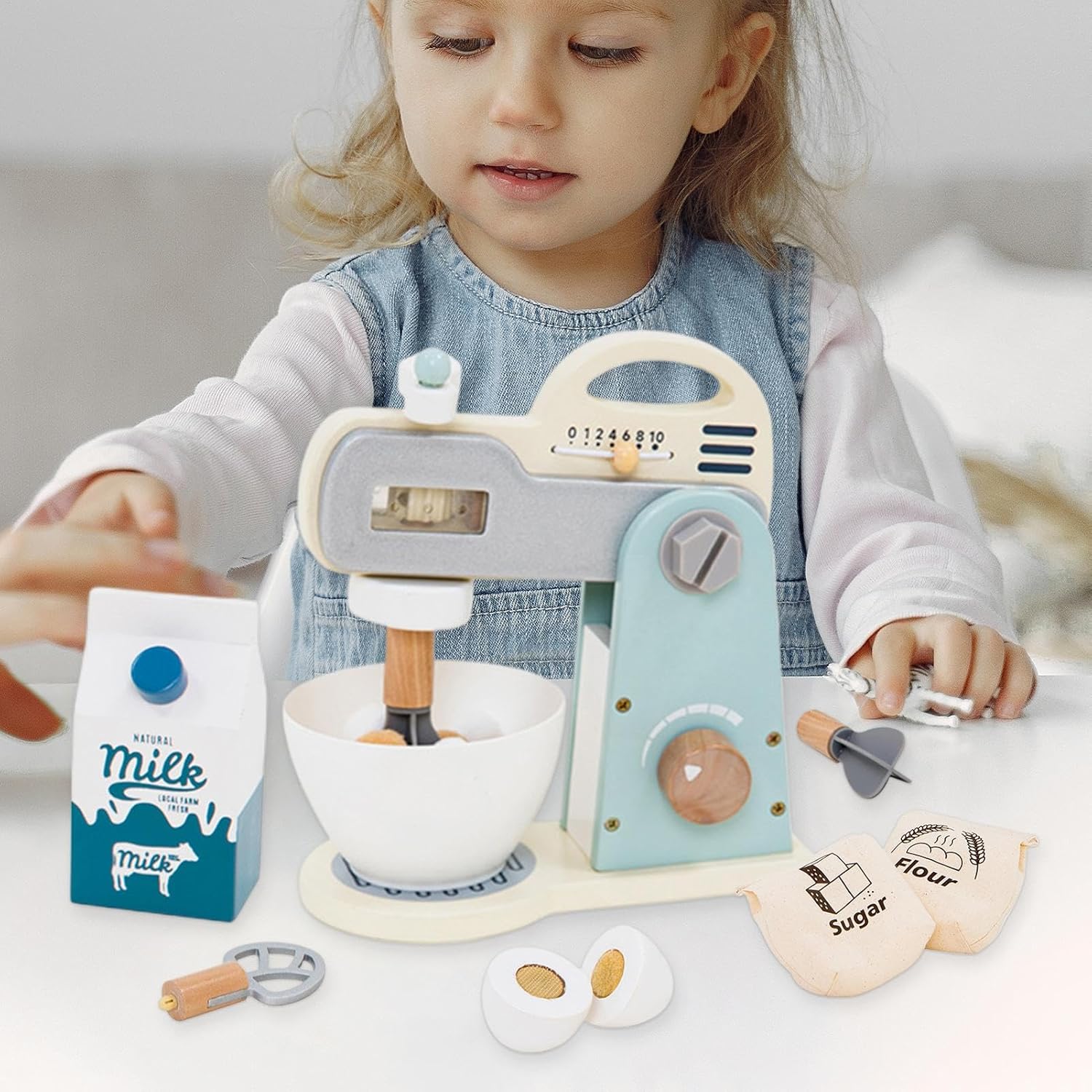 Durata nel : Costruito con materiali legnosi di ottima qualità e superfici levigate, il frullatore offre durabilità igienica. L'assemblaggio resistente regge il gioco dinamico mantenendo standard igienici per divertimento istruttivo di lunga durata. Boost Apprendimento: Favorisce esplorazione creativa con funzioni di miscelazione realistiche, sviluppando abilità pratiche attraverso il gioco tattile. Coltiva curiosità per le basi della cucina supportando crescita cognitiva e coordinamento in esperienze ludiche Esperienza Realistica: Design dettagliato con funzionali come frullatore, contenitore latte e pezzi uova. Permette ai bambini di imitare azioni di cucina reali, incoraggiando narrazione e sviluppo di abilità, ideale per aspiranti chef che praticano mescolatura e creazione ricette Realismo Coinvolgente: Ricrea un'esperienza di miscelazione autentica. La costruzione robusta ma leggera bilancia sicurezza e giocabilità. Il design retro-moderno attraente favorisce infinite possibilità di narrazione culinaria nella cucina gioco. Organizzazione semplice: Accendi divertimento in viaggi o eventi con questo frullatore giocattolo facilmente trasportabile. Linee morbide scivolano comodamente in borse, soluzione organizzata mantiene ordine nelle aree gioco.