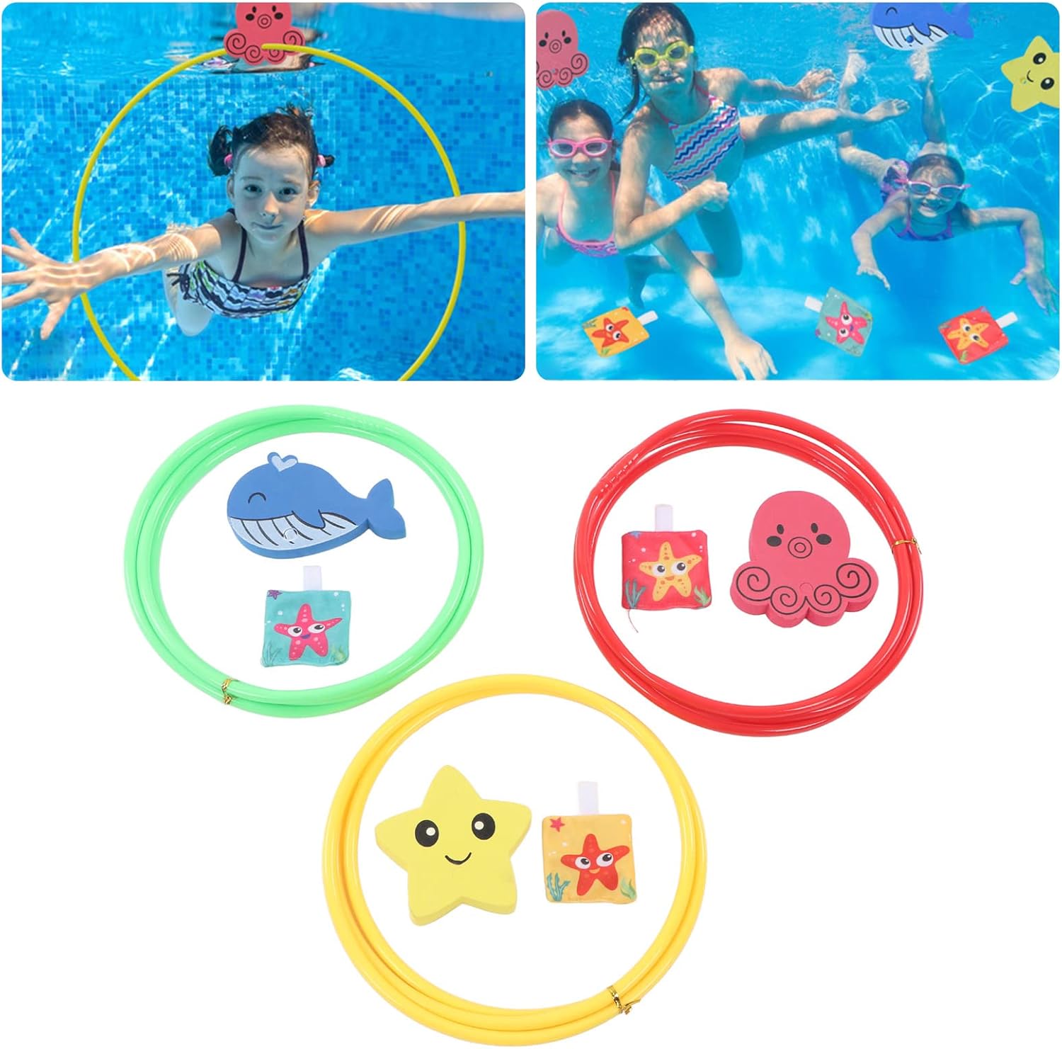 [Divertente allenamento di nuoto] Tuffati attraverso gli anelli per l'allenamento di nuoto, aiutando i bambini a imparare a nuotare e divertirsi con i giochi subacquei durante le calde giornate estive. [Facile da trasportare] Il design pieghevole riduce lo spazio, rendendolo comodo da trasportare e garantisce il mantenimento di una distanza di sicurezza durante l'apertura degli anelli. [Migliora le abilità fisiche] Gli anelli da immersione aiutano i bambini a sviluppare le capacità fisiche, a esercitare l'equilibrio e a migliorare la coordinazione fisica sia per i ragazzi che per le ragazze. Realizzati in plastica di qualità, questi anelli da immersione sono robusti, rotondi a 360 gradi e sicuri per le mani dei bambini. [Giochi acquatici coinvolgenti] Ideale per tornei, percorsi a ostacoli e giochi acquatici, rendendo ogni sessione di nuoto emozionante e divertente.