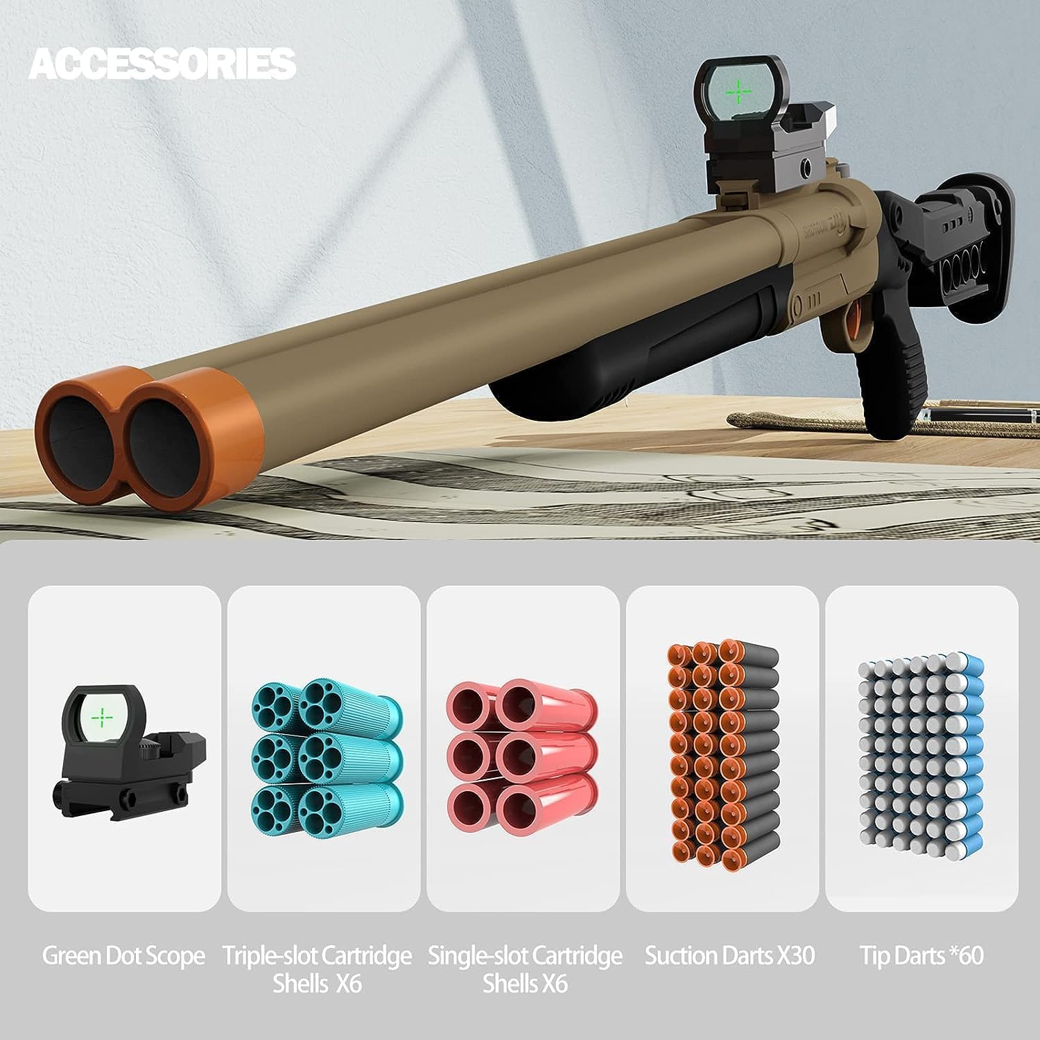 Le freccette con ventose possono essere bloccate meglio sul bersaglio di tiro liscio, non causeranno danni o danni a il corpo. I fucili giocattolo con proiettili morbidi possono esercitare le abilità fisiche e sportive, l'osservazione e la resistenza, godendo di un'incredibile esperienza all'aperto e al chiuso con i vostri bambini. Scelta ideale per feste di compleanno a tema per bambini, riunioni di famiglia o intrattenimento all'aperto. Questo giocattolo blaster in schiuma sarà il regalo perfetto per il compleanno del vostro bambino, per Halloween, Capodanno e Natale. Adatto per ragazzi, giovani, bambini 8 9 10 11 12+. La confezione include: 1x pistole giocattolo, 6x canne a triplo colpo, 6x canne a colpo singolo, 30x freccette ad aspirazione, 60x proiettili in schiuma, 1x cannocchiale, 1x manuale.