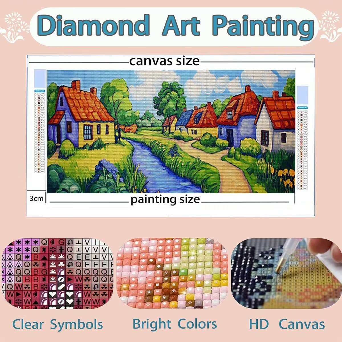 DIAMOND PAINTING SIZE AND PACK : Diamond painting fumetto è size 35x75cm, include 1 tela ad alta definizione, 1 penna a diamante, 1 vassoio a diamante cubico, 1 argilla adesiva, 5 sacchetti sigillati, il set contiene abbastanza diamanti quadrati colorati (un extra del 30%) e tutti gli strumenti necessari per realizzare diamond painting TELA PER DIAMOND PAINTING HD : Diamond painting piccola città tela utilizza una stampa ad alta definizione, garantendo che ogni numero o lettera sia chiaramente identificabile, trovarli facilmente, tela impermeabile e dalla consistenza uniforme, con una copertura superiore in plastica autoadesiva per mantenere la pittura appiccicosa e i diamond al sicuro COLORATA FULL DIAMOND PAINTING : Diamanti nei nostri kit diamond painting con trapano completo sono riccamente colorati e comprendono l'intero spettro di tonalità necessarie per l'opera d'arte. Realizzati con materiali di alta qualità, questi diamanti mostrano brillantezza, lucentezza e resistenza allo sbiadimento. La luce brillante riflessa dalle loro superfici anima l'intero dipinto DIAMOND PAINTING FUMETTO : Diamond painting piccola città, qui est un kit de peinture au diamant adapté aux adultes, nos kits de diamond painting pour adultes sont disponibles dans une variété de styles, y compris des paysages, des animaux et plus encore, pour répondre à différents besoins personnalisés (vous pouvez rechercher des Lioauanh diamond painting) EXCELLENT SERVICE APRÈS-VENTE : Après réception du kit diamond painting, veuillez d'abord vérifier la diamond et les accessoires. Si un diamant est manquant ou endommagé, contactez-nous à temps et nous vous fournirons une solution sous 24 heures (L'image indique la taille maximale, veuillez acheter la taille souhaitée)