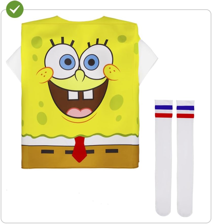 🔴 Include: Costume per Adulto. Costume intero e calzini. Color Giallo. Materiale Costume 100% poliestere e calze 98% poliestere 2% elastan. NON INCLUDE: pantaloni 🟠 Taglia unica. Se sei una persona molto alta, corpulenta o hai dubbi tra due taglie, è meglio selezionare la taglia più grande, poiché è normale che vestano larghe. 🟡 In FUNIDELIA designiamo i costumi più originali per le tue feste più divertenti. Il nostro marchio Made By Funidelia è garanzia di esclusività e qualità. Identificare i prodotti più richiesti dai clienti ci permette di realizzarli in modo rapido ed esclusivo, offrendo il miglior rapporto qualità prezzo nei prodotti delle licenze più importanti al mondo. 🟢 Costumi Spongebob variegati e unici per Carnevale, Halloween, feste in maschera e compleanni. Vestito Cartoni Animati per godere al massimo come Films & Series. 🔵 Il costume più originale e divetente: Per costumi in gruppo o in coppia, per adulti e piccini!. COSTUME DI SPONGEBOB per donna e uomo per trasformarti nel protagonista dei tuoi cartoni animati preferiti. Have Fun!