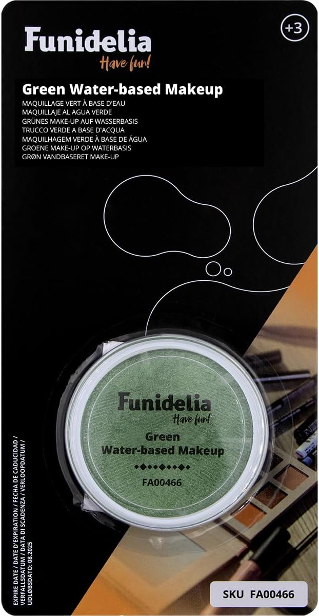 🔴 Include: accessorio per costume per Adulto. Trucco da 9,6 g a base dacqua. Color Verde. Materiale Colore per il viso a base dacqua Talco, acqua, glicerina, gliceril stearato se, lanolina peg-75% steareth-10, gomma arabica, fenossietanolo, caprilil glicole, etilesilglicerina Può contenere -fd c giallo 6% lago CI 15985, biossido di titanio CI 🟠 Gli accessori per il tuo costume sono quei dettagli che fanno la differenza e che rendono il tuo outfit unico e totalmente personalizzato. 🟡 In FUNIDELIA designiamo i costumi più originali per le tue feste più divertenti. Il nostro marchio Made By Funidelia è garanzia di esclusività e qualità. Identificare i prodotti più richiesti dai clienti ci permette di realizzarli in modo rapido ed esclusivo, offrendo il miglior rapporto qualità prezzo nei prodotti delle licenze più importanti al mondo. 🟢 Accessori Verde variegati e unici per Carnevale, Halloween, feste in maschera e compleanni. Make Up Originali & Divertenti per completare qualsiasi costume. 🔵 L'accessorio perfetto per il tuo costume: Il classico funziona sempre bene!. L'accessorio Verde perfetto per il tuo costume. Potrai anche utilizzare TRUCCO A BASE DACQUA VERDE LIME per un costume.