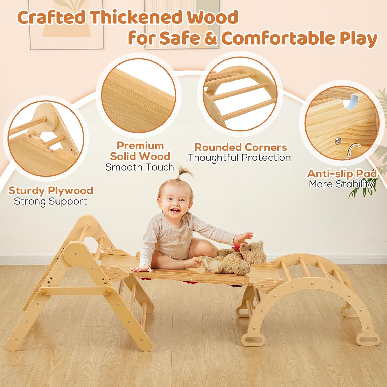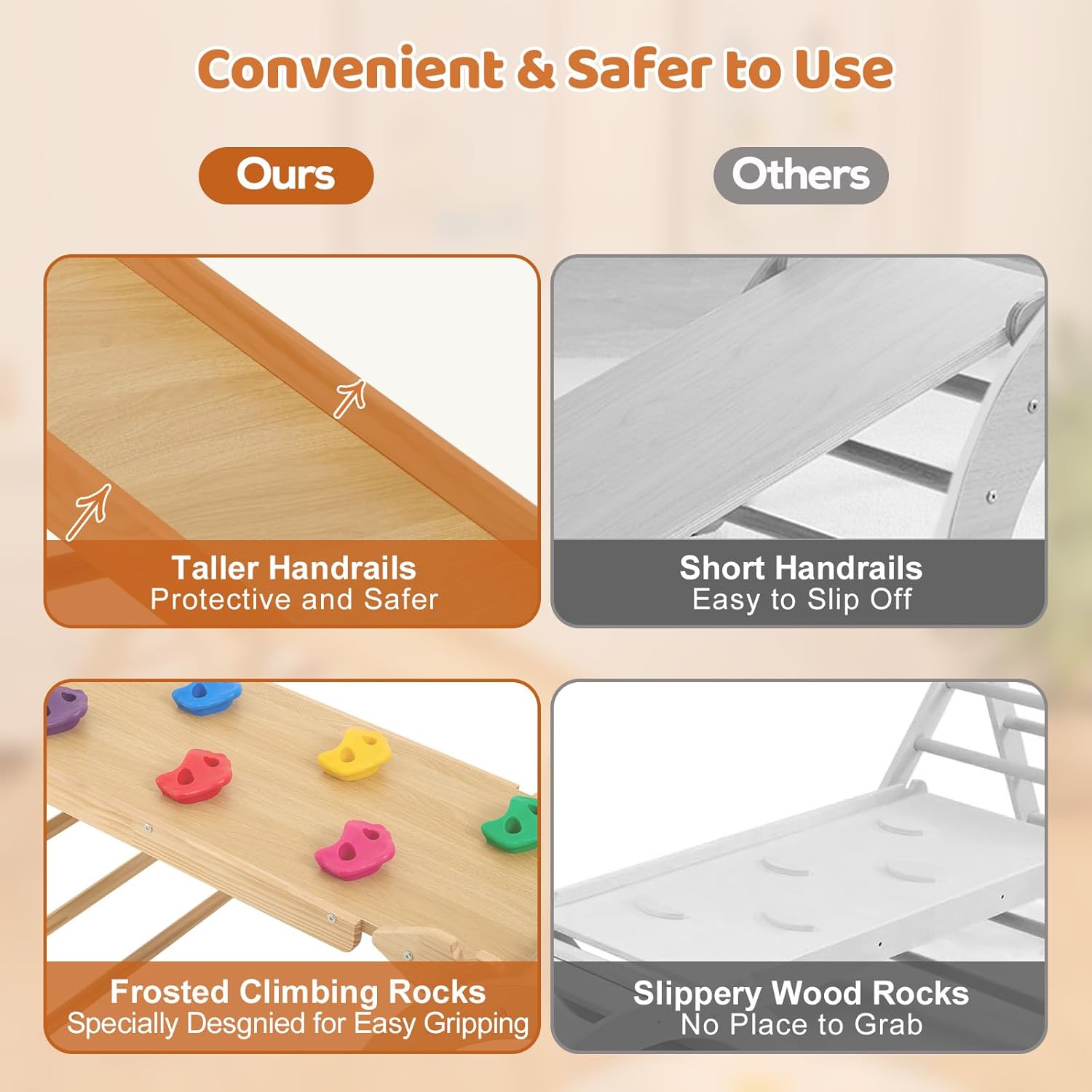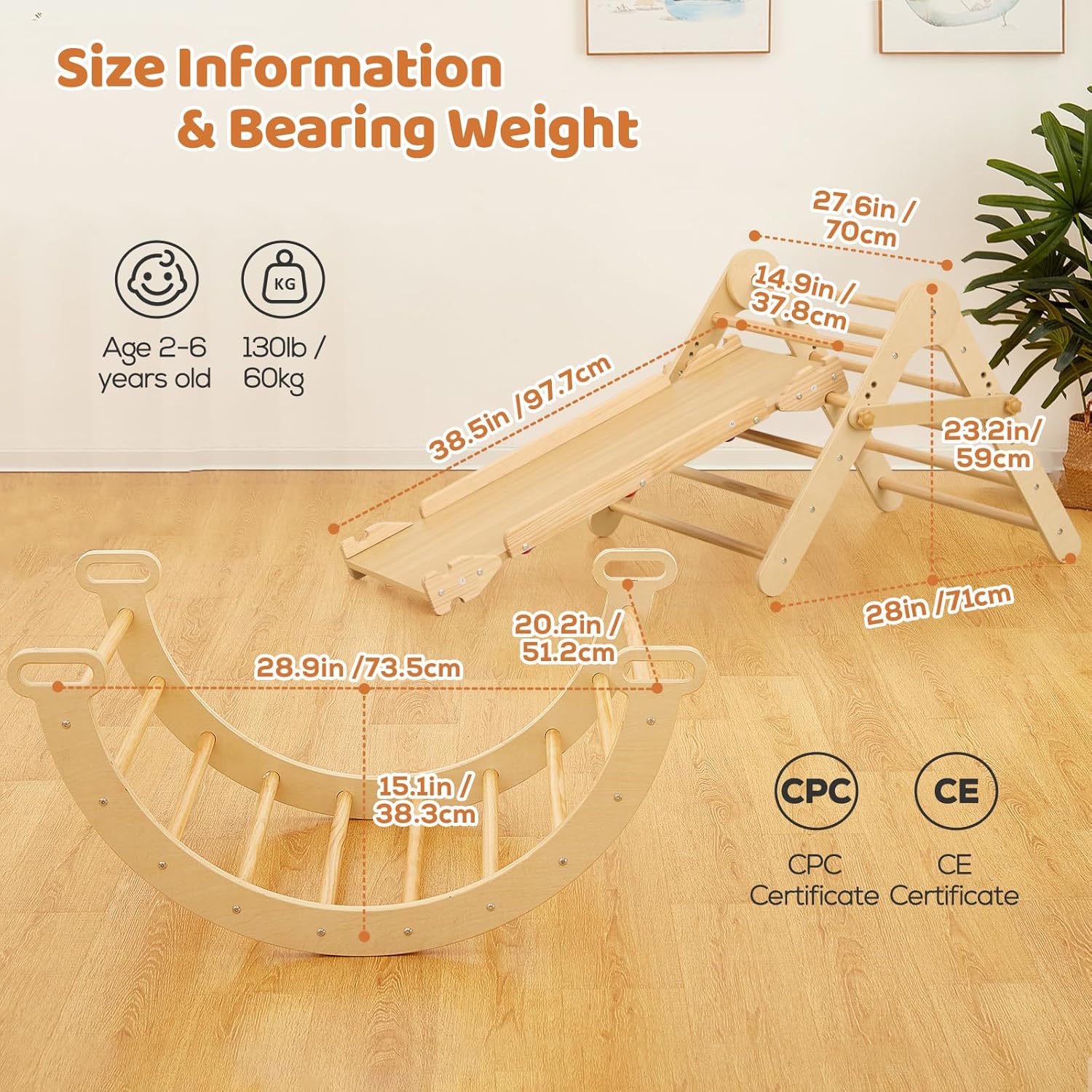 【Set Triangolo in 3 pezzi, sblocca un sacco di modi di giocare】Ogni bambino è nato per essere un piccolo avventuriero. FUNLIO Arrampicata Montessori offre 3 pezzi principali: scivolo e roccia da arrampicata, arco Montessori e triangolo da arrampicata. È possibile combinare liberamente questi pezzi in diverse modalità. Lo scivolo ha anche una pendenza regolabile. Basta posizionarlo su diversi pali. Il bambino può vivere una bella avventura con i suoi amici per sviluppare il senso di condivisione e cooperazione. 【Legno massiccio ispessito e robusto, squisita fattura】Confrontato con altri set di giochi per bambini sul mercato, il set di giochi per bambini FUNLIO vanta tavole e aste in legno ispessito, per garantire un gioco sicuro e un utilizzo duraturo. Ogni pezzo di legno è liscio al tatto, senza sbavature. Oltre al legno massiccio di alta qualità, è stato aggiunto un rivestimento di vernice per proteggerlo dall'umidità e renderlo facile da pulire, prolungando la durata del prodotto. 【Facile installazione con dadi pre-incorporati】Preoccupati di una configurazione che richiede molto tempo e che occupa uno spazio eccessivo? Non preoccupatevi più! Il playset per arrampicata FUNLIO semplifica il processo grazie ai dadi premontati. È possibile installarlo a mano. Grazie alle chiare istruzioni, ci vorranno solo 30 minuti per completare il processo. Inoltre, questo triangolo per arrampicata è facile da piegare e fa risparmiare spazio. Con una capacità di peso di 60 kg, è un regalo perfetto per il compleanno, la festa del bambino e il Natale dei bambini dai 2 ai 5 anni. 【Dettagli di sicurezza aggiornati, per un gioco sicuro】 Prestiamo attenzione a ogni dettaglio di sicurezza. Sullo scivolo, abbiamo aumentato l'altezza dei corrimano di protezione per garantire uno scorrimento più sicuro. Le rocce da arrampicata smerigliate sono state appositamente progettate per essere più facili da afferrare. Per far funzionare i pali da arrampicata con il set da arrampicata, sono state realizzate delle scanalature a mezzaluna appositamente studiate per evitare di scivolare o cadere. 【Politique de Retour de 90 Jours & Services de Qualité d'1 An】FUNLIO s'engage à offrir à ses clients des produits et services exceptionnels. Nous proposons une politique de retour de 90 jours et un service de qualité d'1 an. En cas de pièces manquantes ou endommagées pendant le transport, veuillez nous contacter immédiatement. Nous vous aiderons en envoyant des pièces de rechange ou en échangeant le produit sous 2 jours ouvrables. Vous recevrez également un remboursement de 10%.