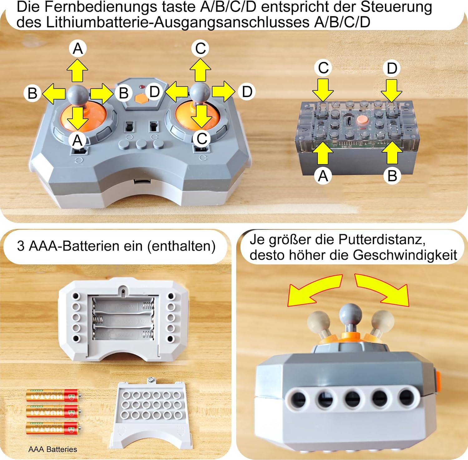 Compatibilità: si tratta di un set di telecomando multifunzione e kit di batterie al litio ricaricabili che possono essere utilizzati per il controllo remoto. Compatibile con i kit di blocchi di costruzione dei marchi più noti. I mattoncini rendono il mondo concreto e vivo e il set motore dà vita al mondo. 【Controllo della velocità】 Più l'asta di spinta del telecomando viene spostata in avanti, maggiore è la velocità, simulando un avvio reale da lento a veloce. Allo stesso tempo, il telecomando può essere caricato e può anche essere installato con 3 batterie AAA, il che è più conveniente.,STEM+Technic: il set non è compatibile solo con l'insegnamento STEM, ma anche con grandi set meccanici e altri modelli di elementi costitutivi. Ci sono 4 canali di controllo, i pulsanti A, B, C e D sul telecomando corrispondono alle interfacce A, B, C e D sulla batteria al litio. Contenuto della confezione: il set include telecomando a velocità regolabile × 1, pulsante del telecomando × 2, batteria al litio ricaricabile × 1, motore L ad alta velocità × 2, servomotore ad alta velocità × 1, batteria AAA × 3, cavo di prolunga da 50 cm × 1, cacciavite × 1, asta di spinta piccola 92693 × 4, Ammortizzatore 76537 × 4, 87761 × 1, cavo di ricarica × 1 (Con le parti incluse, puoi dare libero sfogo alla tua immaginazione durante la progettazione. Fare riferimento al manuale di istruzioni per l'uso.) 【Modalità di programmazione】 Può anche essere controllata tramite un'applicazione su un telefono cellulare. La modalità di programmazione può essere ampiamente utilizzata in STEM per promuovere il pensiero logico e regolare la direzione e il tempo di rotazione del motore attraverso il modulo applicativo per far funzionare automaticamente il motore. 【Persone interessate】Come regalo, questo sarà molto buono, giocatori MOC, giocatori di blocchi tecnici, giocatori creativi, giocatori creativi, marito, padre, amici. Forniamo un anno di servizio post-vendita, non esitate a utilizzarlo