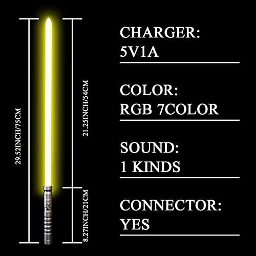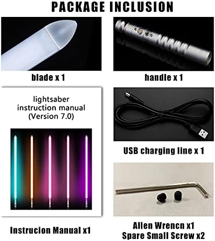 Spada laser con effetti sonori del film FX: la spada ha 6 effetti sonori (cambio di effetti sonori, effetti sonori in standby, effetti sonori ondeggianti, effetti sonori di bussare, effetti sonori di commutazione, effetti sonori di batteria scarica, effetti sonori di ricarica). Accendi il pulsante di accensione per attivare, permettendoti di viaggiare verso il film reale. Spada laser staccabile e assemblata: la lama è molto robusta, rimovibile e sostituibile. La lama è lunga 57 cm e l'intera spada è lunga 75 cm. Puoi acquistare 2 spade laser e noi regaleremo un connettore per spada laser. Ti consente di ottenere una modalità di combattimento gratuita a doppio taglio o di creare una sciabola in stile Dasmore. Spada laser realistica a LED: 9 W evidenziano il cambiamento di colore RGB. Una spada laser ha 7 colori di luce classici (rosso, giallo, verde, ciano, blu, rosa, bianco). La lama emette una luce intensa e sembra essere illuminata in modo uniforme. Ricaricabile tramite USB: la spada laser ha una batteria ricaricabile incorporata da 1200 mAh, adatta a tutti i dispositivi di interfaccia USB (adattatori, PC, caricabatterie per telefoni cellulari, ecc.). Durante la ricarica, la lama si accende leggermente per avviare la ricarica, quindi si spegne quando è completamente carica. Il tempo di ricarica è generalmente di 2-3 ore (promemoria caldo: la testina di ricarica non può superare 5V2A, altrimenti brucerà il circuito della spada laser.) Sciabola leggera con manico in alluminio metallico: il manico è realizzato in alluminio metallico, che è ben lucidato ed è comodo da impugnare. L'elsa è lunga 21 cm e ha un diametro di 3 cm. Le dimensioni e il peso sono moderati nella mano ed è molto robusto.