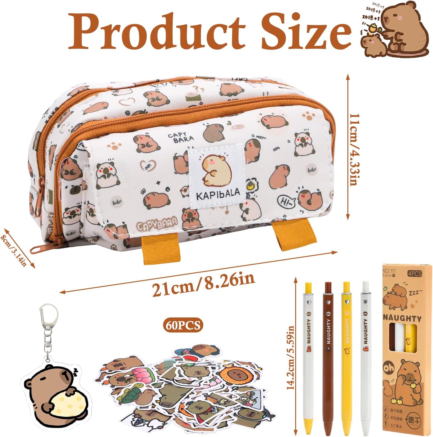 【Kit Completo】Più del semplice astuccio! Include 1 astuccio capybara + 4 penne Capibara + 60 adesivi + 1 adorabile portachiavi - perfetto per scuola e tempo libero. 【Spazioso & Organizzato】 Addio al caos nell'astuccio! 3 scomparti + 1 tasca laterale in mesh per penne, righello e gomma. Tessuto ultraresistente per un uso quotidiano. 【Design Trendy】 Stampa animalier per imparare divertendosi! Motivo unico su astuccio, penne e adesivi - super apprezzato da bambini e ragazzi! 【Materiali Premium】 Robusto e idrorepellente! Astuccio in poliesere anti-strappo con cerniera scorrevole. Facile da pulire (basta un panno!). 【Super Pratico】 Ideale per scuola, università, ufficio e viaggi! Perfetto per elementari, medie o uni. Usabile anche come beauty case o organizer!