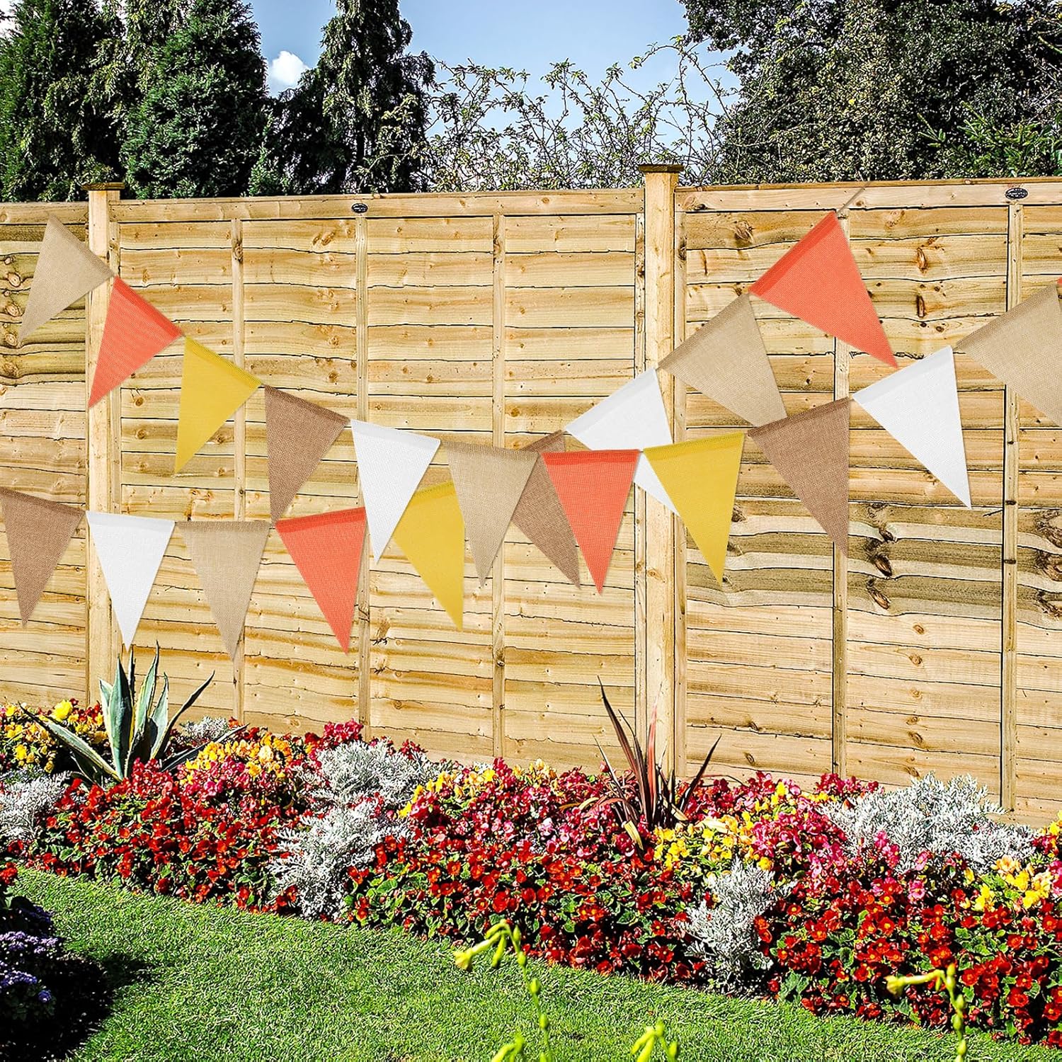 【Resistente e riutilizzabile】Il materiale della bandiera triangolare è imitazione di lino, una sorta di robusto materiale a rete impermeabile per esterni.Colori anche dopo molto sole e non facili da sbiadire.Può essere utilizzato molte volte 【Pacchetto e dimensioni】Riceverai 5 bandierine, ciascuna ghirlanda con una 4m corda di canapa e 12 bandierine colorate, per un totale di 60 bandierine. (ogni bandiera è 13 * 17 cm).Quindi otterrai una lunghezza totale di 20m, sufficiente per decorare il tuo giardino o per decorare il tuo festa 【Liberamente regolabile】La bandiera triangolare è pre-assemblata e ogni piccola bandiera può essere regolata a una distanza che è conveniente da usare e facile da installare 【Decorazione fai-da-te】 Ogni bandiera è vuota, gli spazi vuoti offrono molto spazio per il fai-da-te, puoi fare il fai-da-te come immagini se lo desideri. Puoi allegare foglie, lettere in stick e altro 【Ampia applicazione】 Il nostro striscione può essere utilizzato come stamina di compleanno, stamina per feste, stamina all'aperto, stamina per matrimoni potrebbe essere l'ideale per la decorazione di Natale, camera dei bambini, anniversario, festa estiva ecc.