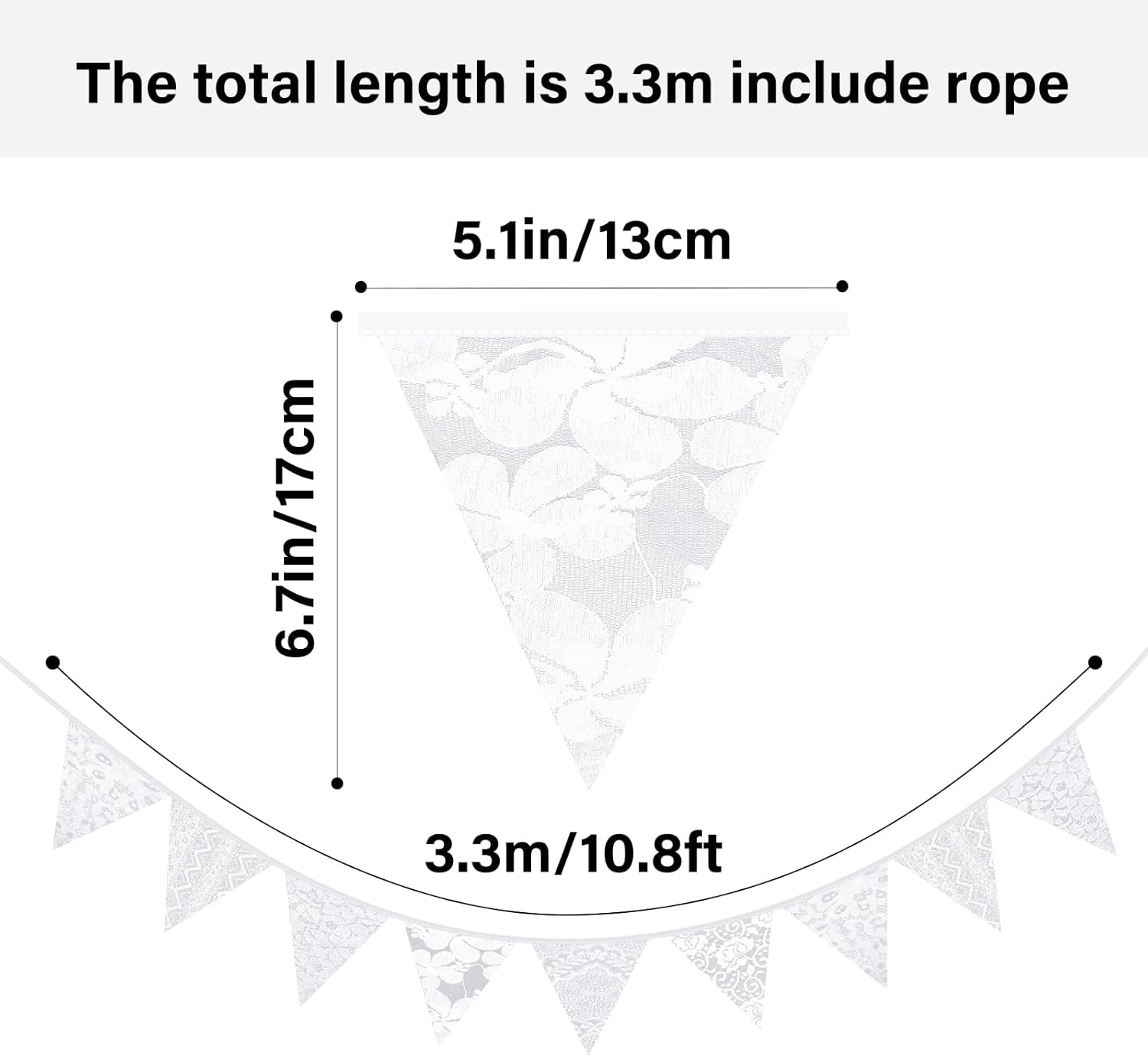 【Catena di stendardi in pizzo stabile】 La ghirlanda di stendardi è realizzata in tessuto, il tessuto è davvero molto bello e sembra molto elegante e sostenibile! 【Catena di gagliardetti vintage】Meravigliosa catena di gagliardetti dal look vintage. Molto delicato e vintage grazie al pizzo. La ghirlanda super bella si adatta perfettamente alla location del matrimonio! 【Grazioso gagliardetto in pizzo】 La catena di gagliardetti in pizzo da 3,3 m è realizzata in pizzo di alta qualità con 12 gagliardetti in 6 modelli diversi. Perfetto per decorare un matrimonio o un giardino. 【Ghirlanda riutilizzabile】 La ghirlanda di stendardi è composta da due parti leganti e la parte della bandiera al centro. La lunghezza di ciascuna estremità della cravatta è 0,5 M, mentre la parte della bandiera è 2,4 M. La ghirlanda di bandierine in tessuto vintage è lavabile e riutilizzabile, può essere utilizzata più volte. 【Grande bandierina decorativa】 La bandierina di pizzo in tessuto bianco è perfetta per compleanni o matrimoni, ma anche come decorazione semplice e naturale per il giardino/patio. Ottima decorazione per matrimoni o giardino!