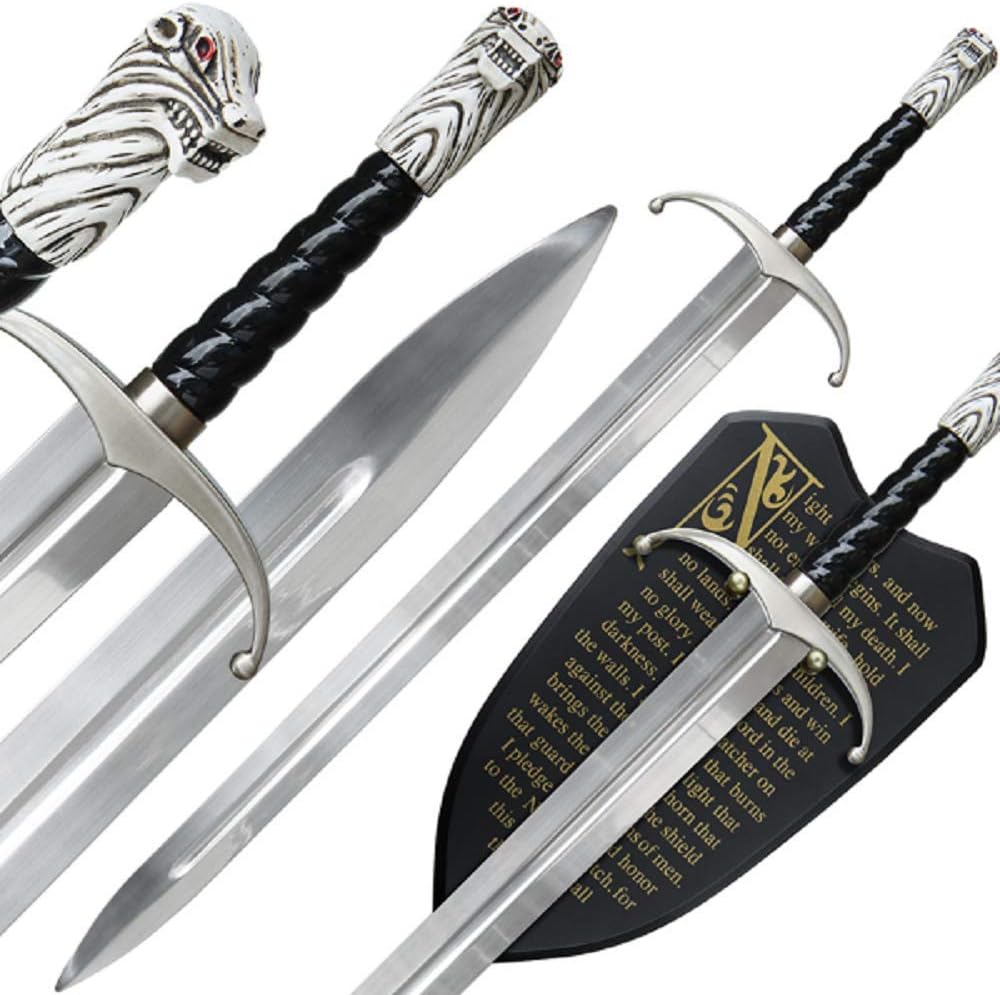 G8DS Jon Longclaw Knight's Watch Spada "Haus Stark" con supporto a parete Lunghezza totale: 1067 mm Lunghezza lama: 814 mm Accessorio indispensabile per tutti gli appassionati di GoT Night Watch