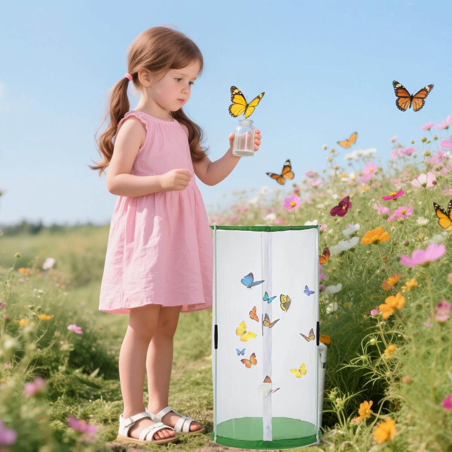 Materiale solido: struttura cilindrica con tessuti leggeri e durevoli, fornisce un supporto affidabile e un facile assemblaggio per migliorare l'esperienza di osservazione delle farfalle senza ulteriori sforzi. Compatto e riutilizzabile: configurazione circolare di con maniglia portatile integrata, garantisce una conservazione piatta e un design compatto riutilizzabile per una gestione quotidiana efficiente. Pulizia facile: maglia trasparente che facilita lo sviluppo e migliora la cattura delle farfalle, nonché la base tessile resistente e lavabile che semplifica le normali attività di pulizia. Visibilità ottimale: flusso d'aria adatto alle garanzie di osservazione Sicurezza CONNUTER CON MA FINE, Fornisce una circolazione ottimizzata nel sistema di ventilazione protetta Design intuitivo: Pannello di accesso con apertura laterale alla cerniera e alla maglia superiore Consenti funzionalità interattive durante la cura e l'alimentazione delle farfalle