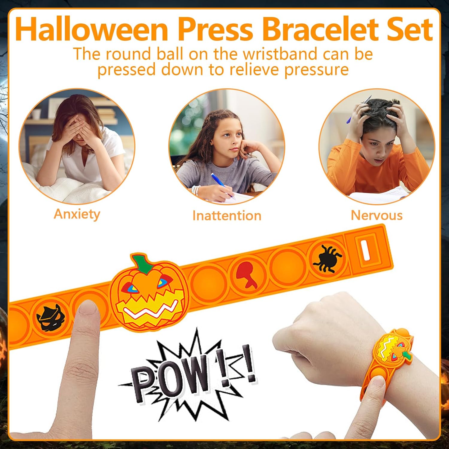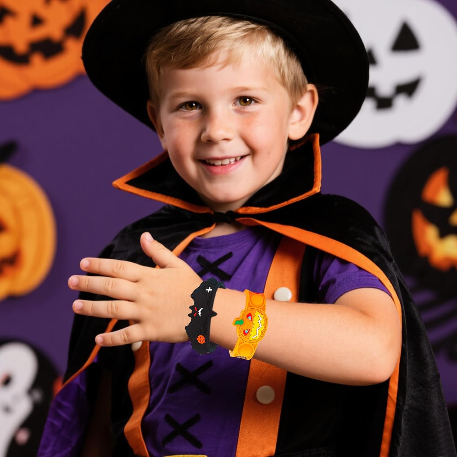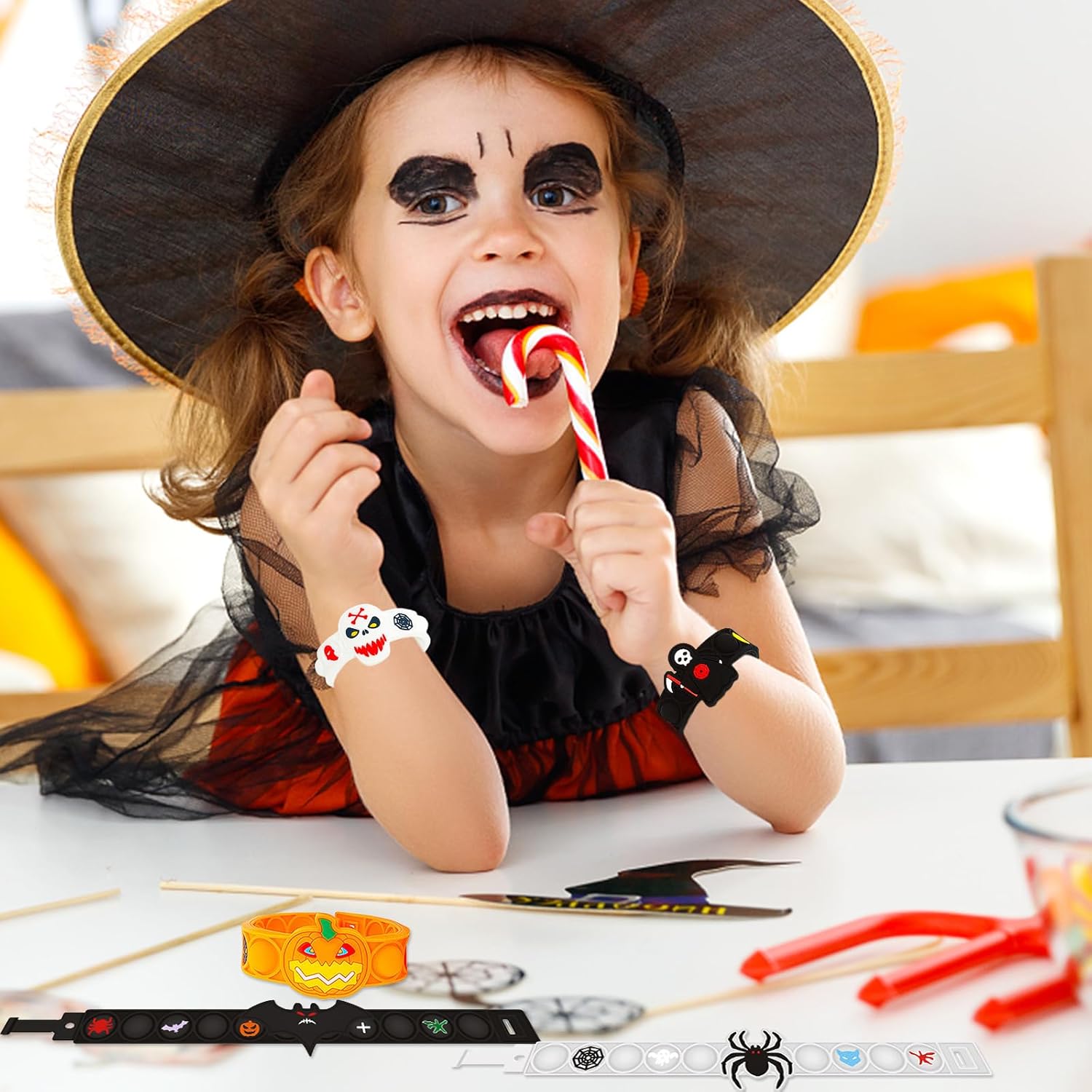 Braccialetto giocattolo di Halloween: riceverete 5 braccialetti per Halloween, ognuno di questi braccialetti di Halloween ha un motivo unico, colori vivaci, puoi condividerli con i tuoi migliori amici alla festa a tema Halloween Materiale di alta qualità: i nostri braccialetti per Halloween sono realizzati in morbido silicone. Il materiale è morbido e robusto, superficie liscia, comoda da tenere in mano. Con una lunghezza di 23 cm, il bracciale si adatta molto al polso di un bambino Design a tema Halloween: il design è ispirato ad Halloween e i colori sono i tipici colori di Halloween arancione, nero e bianco. Ogni giocattolo di Halloween ha diversi modelli, tra cui fantasmi, zucche, ragni, morte, pipistrelli, scheletri, ecc Pop It giocattolo: questo è un divertente giocattolo antistress, basta premere la bolla verso il basso e farlo scoppiare leggermente; poi girarlo e farlo di nuovo. Aiuta ad alleviare ansia, stress e depressione Regali di Halloween per bambini: i nostri braccialetti di Halloween sono ideali come regali di Halloween per bambini. Sono ideali come imbottitura per pinata, regali per feste, Halloween, compleanno per bambini, regalo di Halloween o anche come premi scolastici