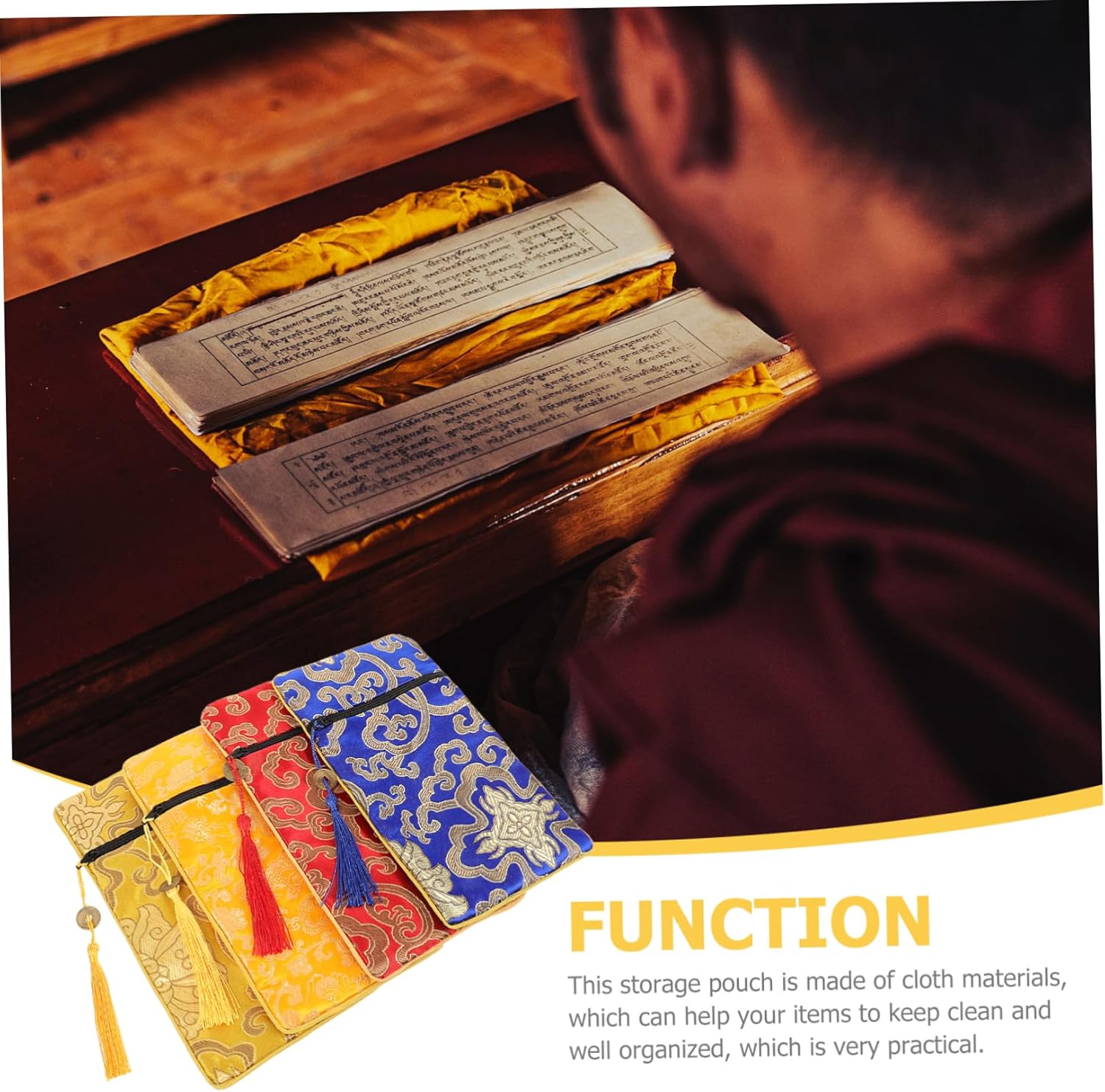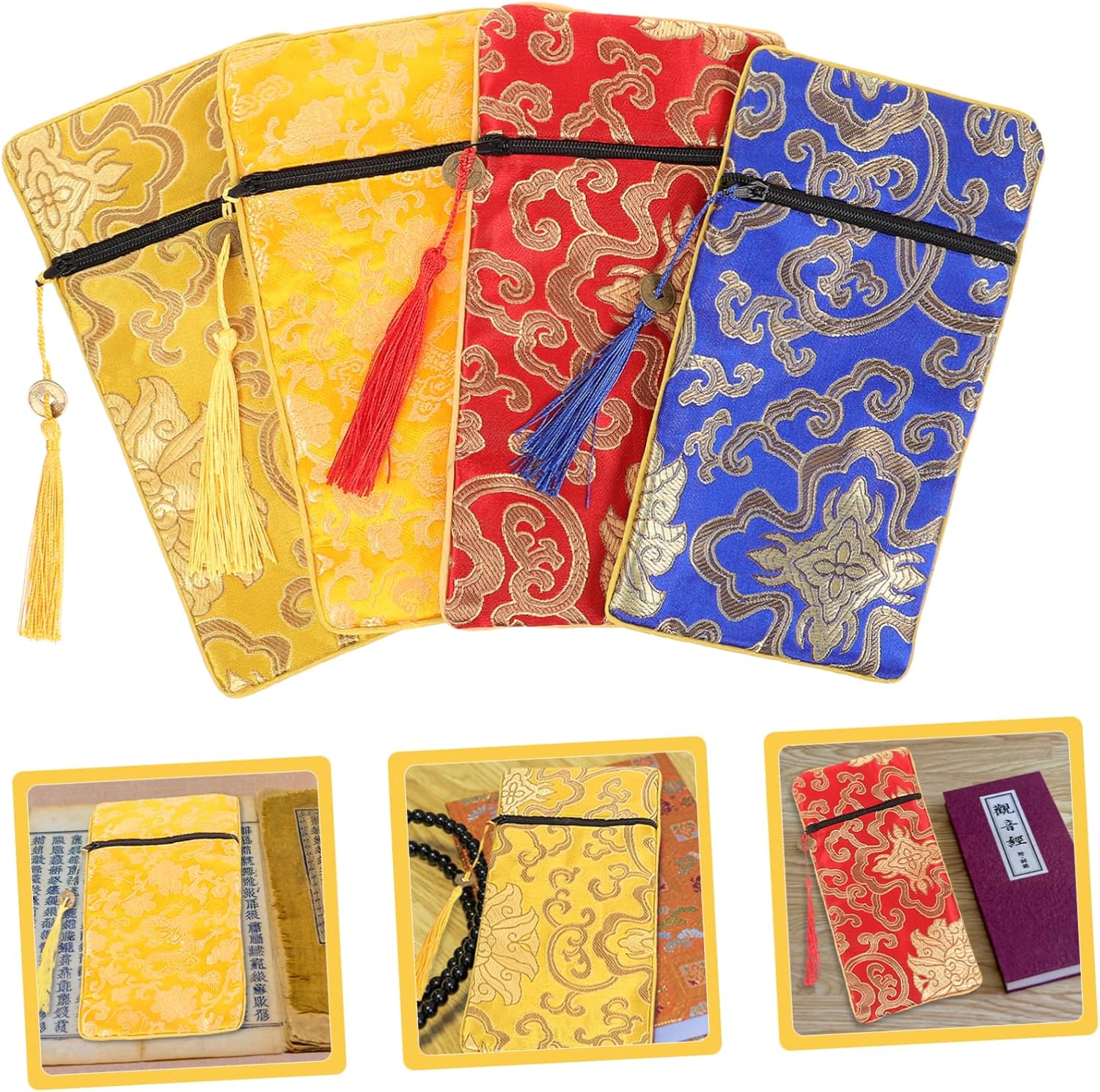 Borsa in broccato ricamato: artigianato eccellente, curato in ogni dettaglio per conferire a questa borsa un aspetto elegante e raffinato, contenitori per articoli vari Sacchetti portaoggetti cinesi: la custodia con cerniera ha un design semplice, ma è molto pratica nell'uso, offrendoti una buona esperienza d'uso, sacchetti per gioielli in broccato Borsa in tessuto in stile cinese: puoi usarla per portare con te le tue scritture preferite ovunque tu voglia, come in dormitorio, in ufficio, ecc., borse in broccato di seta Borsa portaoggetti con scritture - realizzata in tessuto, leggera, robusta e non facile da danneggiare e sbiadire, borsa in tessuto cinese Sacchetto per libri in broccato: il materiale è sicuro e morbido, resistente all'usura e pratico per un uso prolungato, sacchetto in tessuto per libri di scritture