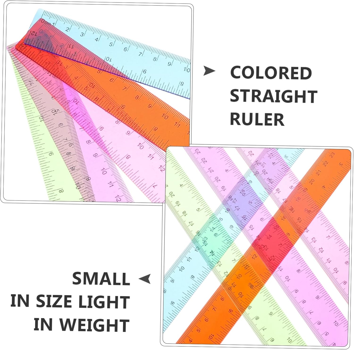 Righello per : di piccole dimensioni, leggero, il nostro righello colorato è facile da trasportare e riporre, non occupa molto spazio, righello per la scuola Righello a bordo dritto: adatto agli studenti per esercitarsi e ripassare prima e durante gli esami il nostro righello colorato è adatto a famiglie, aule, uffici e biblioteche, righello di plastica Righelli per sfusi: sottili e leggeri, non devi preoccuparti che possano rompere il libro o aggiungere altri al tuo libro, righelli sfusi per la scuola Righelli carini: con scala chiara incisa, il righello è facile da leggere e usare, molto pratico e conveniente, righello artigianale Righello scolastico: questo righello dritto colorato è ottimo per lettori, studenti, scrittori, laureati e così via, righello per per la scuola