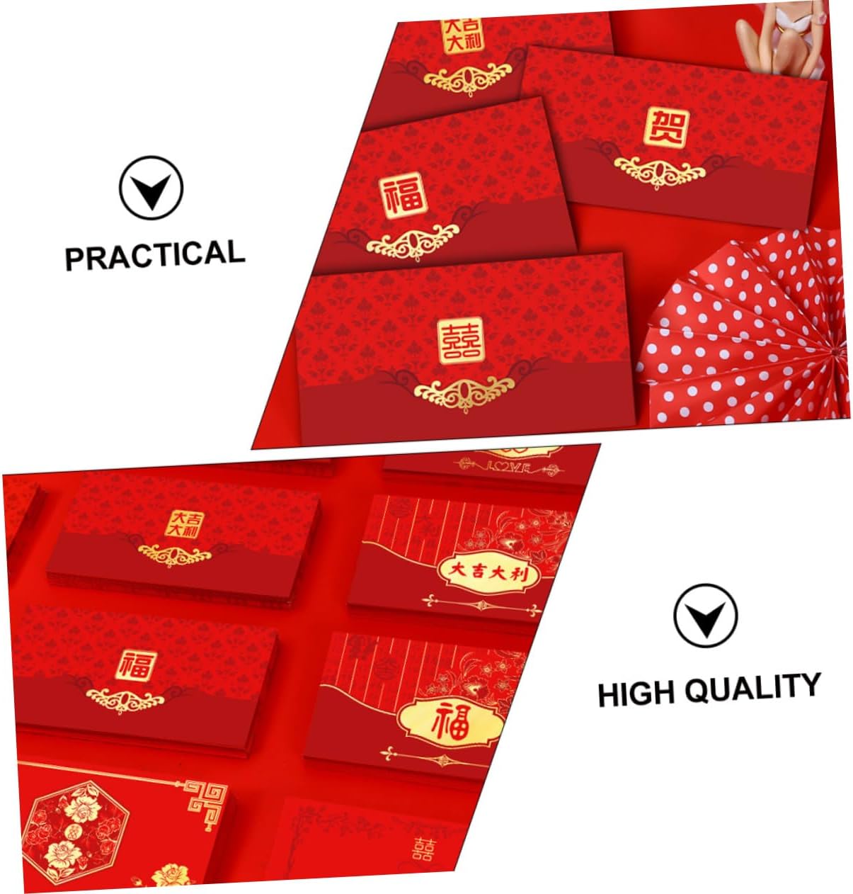 Buste: perfette per il festival di cinese, per augurare a te e alla tua salute un felice anno , pacchetti rossi di capodanno Pacchetti rossi: buste rosse, biglietti d'auguri, inviti, inviti e così via, pacchetti Borse porta soldi: adatte a diverse occasioni, come natale, capodanno cinese, matrimonio, compleanno e altri eventi festivi, busta rossa di capodanno Borsa porta soldi: da durante le feste, buste per il capodanno Raccoglitore di soldi: realizzato in carta e materiale di rame, molto robusto, sacchetti di carta rossa
