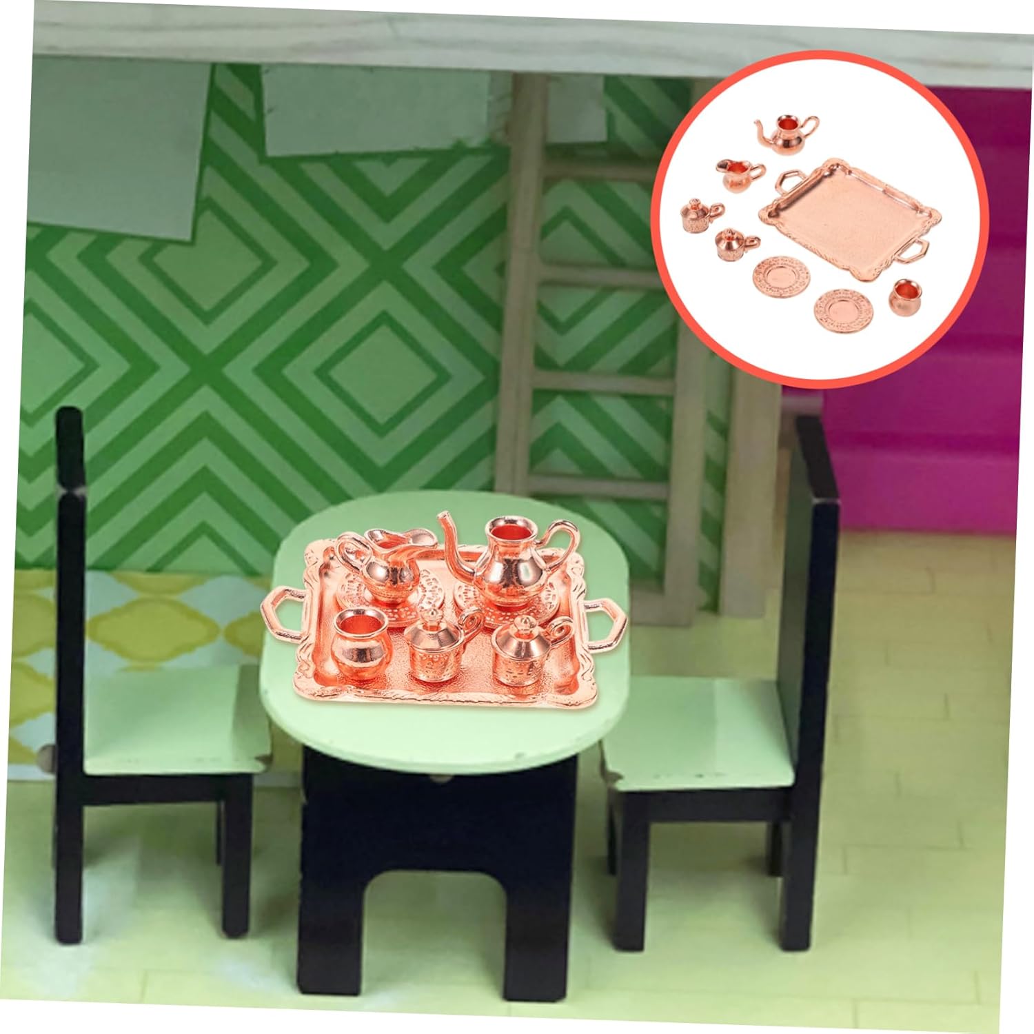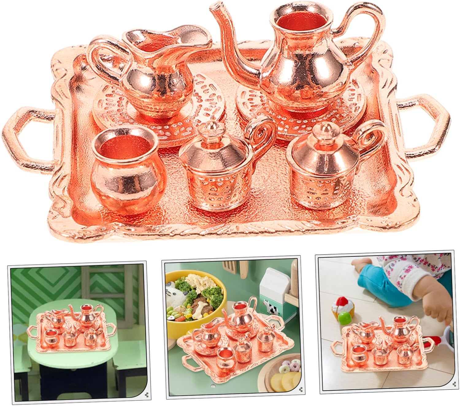 Set da tè da tavolo imitazione - questo mini ornamento è realizzato in lega, durevole per un uso a lungo termine, accessori fai da te modello di set da tè in lega - le dimensioni in miniatura rendono il modello in miniatura facile e comodo da trasportare, mini decorazione della casa Set da tè finto resistente all'usura - pregevole fattura, producibilità, non facile da deformare e danneggiare, set da tè in miniatura resistente all'usura Adorabile set da tè finto - allo stesso tempo può anche essere artistico Migliora l'atmosfera della tua stanza o scrivania set da tè in stile mini decorazione della casa in miniatura - posizionalo su un mini per ottenere dettagli più realistici e dare un'impressione visiva diversa, accessori per bambole