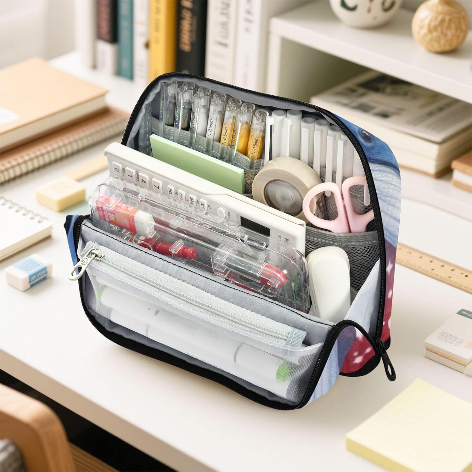Rimane in posizione verticale per un facile accesso: l'astuccio per ragazze si piega in una base stabile utilizzando pulsanti magnetici, trasformandosi in un portapenne verticale che mantiene i tuoi oggetti essenziali visibili e raggiungibili Struttura in tessuto resistente: realizzata in nylon resistente, la custodia per l'organizzazione dell'aula resiste ai graffi, respinge lo sporco e mantiene il suo aspetto elegante attraverso l'uso quotidiano e la manipolazione frequente Interno pulito e spazioso: progettato per la comodità, l'astuccio per penne e matite separa i tuoi oggetti utilizzando una sezione principale, una tasca in rete con cerniera e una tasca aperta per un rapido recupero degli oggetti Multiuso: l'astuccio per penne e matite funziona come astuccio per penne, astuccio per il trucco, kit da viaggio o organizer per ufficio, ideale per scuola, lavoro, gite e uso quotidiano Regalo premuroso e utile: con motivi accattivanti e supporto dal design personalizzato, l'astuccio diventa un regalo pratico ma sincero per qualsiasi età o stile di vita