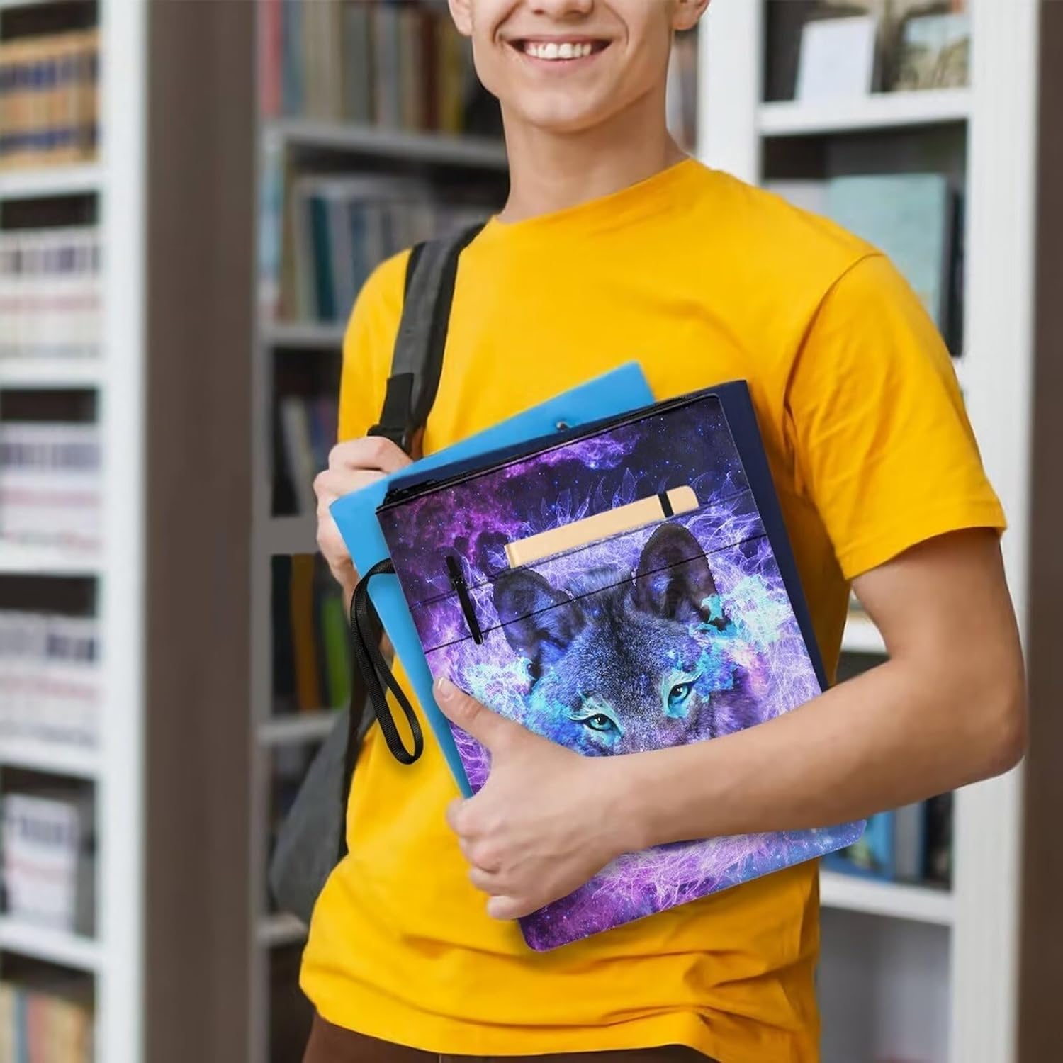 Galaxy Wolf Custodia per libri per bambini Borsa riutilizzabile per libri di testo per ragazze della scuola primaria