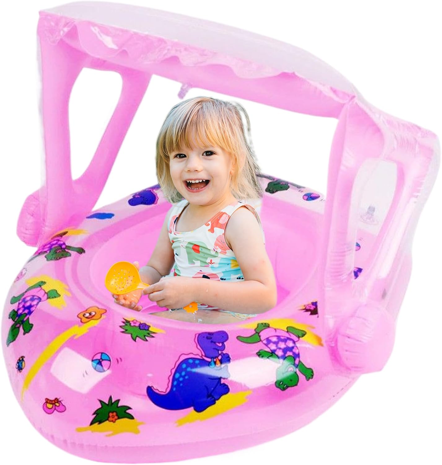 Schermo solare per esterni: Dotato di un parasole staccabile che blocca i raggi UV nocivi, questa caratteristica assicura una protezione ottimale per la pelle delicata del bambino riducendo i rischi dei raggi diretti durante l'utilizzo all'aperto Facile da usare: Questa ciambella galleggiante per bambini offre prestazioni di tenuta robuste e tecnologia anti-perdita, garantendo una galleggiabilità duratura e un gonfiaggio o sgonfiaggio semplice senza bisogno di strumenti aggiuntivi per un'esperienza pratica e conveniente durante l'uso estivo in piscina o al mare Materiali Robusti: Il galleggiante circolare è realizzato in materiali spessi che offrono stabilità eccellente e riducono al minimo il rischio di ribaltamento per un gioco in acqua sicuro e confortevole, specificamente progettato per soddisfare le esigenze dei garantendo loro una tranquilla esperienza di galleggiamento mentre si divertono nell'acqua con i genitori accanto Design dinosauro adorabile: Realizzato con un design incantevole di dinosauro rosa, questo galleggiante per bambini con tettoia assicura che il tuo bambino si distingua in piscina e goda di sessioni di gioco immersive senza sforzo. Il tema giocoso cattura l'attenzione dei bambini e li mantiene coinvolti durante il trascorso in acqua Versatile nell'Uso: Creato per adattarsi perfettamente agli ambienti circostanti questo galleggiante offre la funzionalità di un parasole staccabile che soddisfa le esigenze del bambino rendendolo ideale per l'uso domestico o durante avventure all'aperto come giornate al mare o in piscina