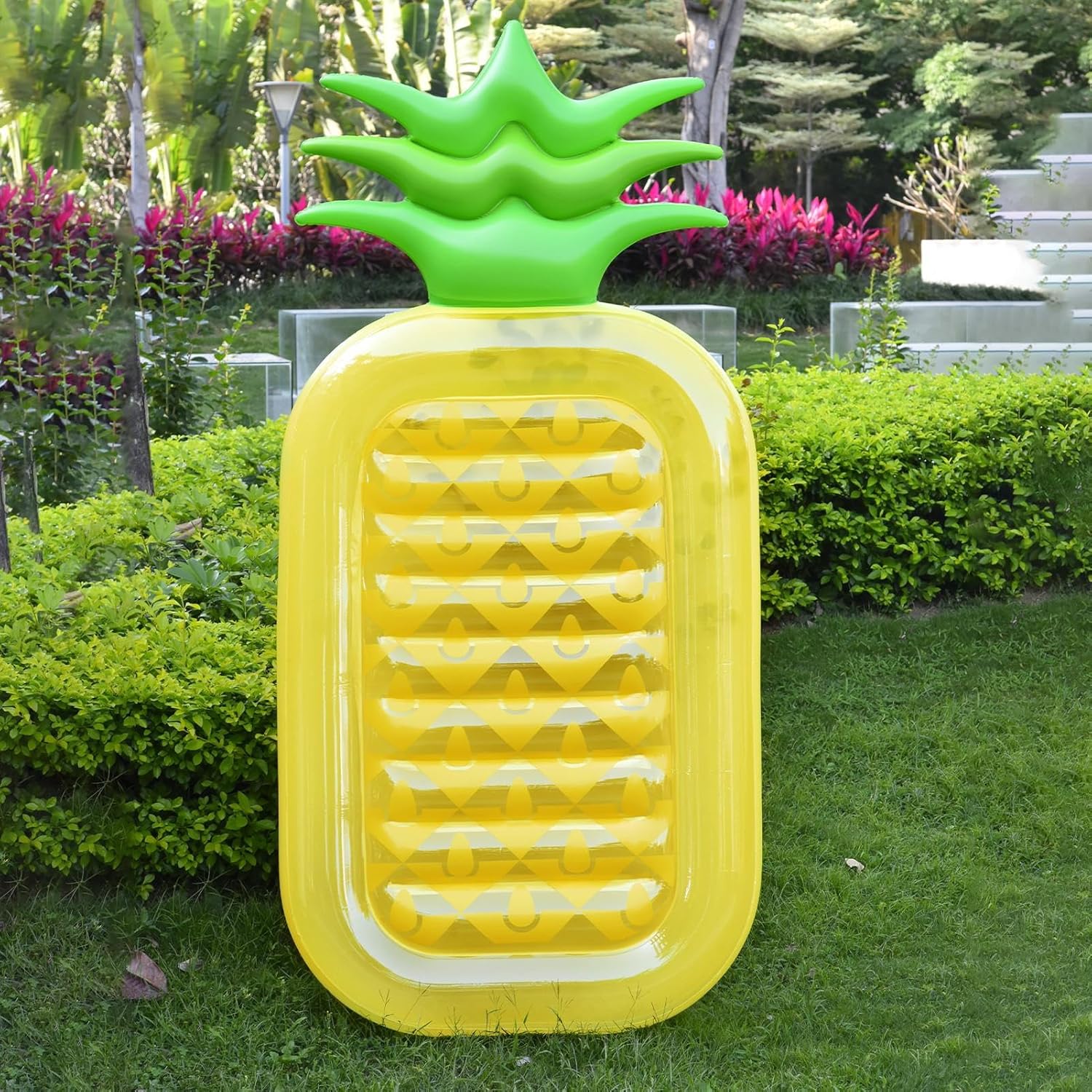 Materiale sicuro: accessori estivi per piscine con zattera galleggiante di grandi dimensioni realizzati in materiale più spesso (0,3 mm), i galleggianti gonfiabili per piscine all'ananas sono più durevoli di qualsiasi altro prodotto sul mercato. Ti tiene al sicuro mentre ti rilassi. Design ad ananas: i giocattoli gonfiabili da piscina hanno una forma colorata di ananas. È una grande aggiunta alla tua piscina. I bellissimi colori rinfrescano la tua estate e aggiungono sicurezza. Facile da usare: i galleggianti gonfiabili della piscina possono essere piegati per riporli durante lo sgonfiaggio. È piccolo e leggero. Il materasso all'ananas è facile da gonfiare e sgonfiare. Grandi dimensioni: la piscina con lettini gonfiabili merita un fantastico regalo di compleanno ed estivo per bambini e adulti. Il galleggiante gonfiabile ti consente di sdraiarti e rilassarti rimanendo fresco. Esperienza confortevole: puoi utilizzare questa gigantesca piscina all'ananas per rilassarti e divertirti con i tuoi amici e familiari alle feste. Perfetto per questa meravigliosa estate.
