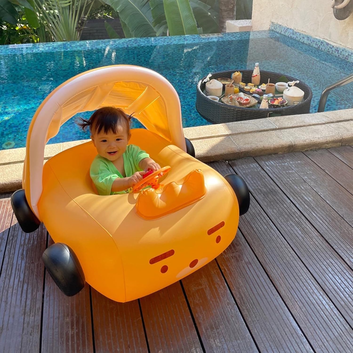 Design divertente da auto: a forma di auto giocosa con colori vivaci e grafica dettagliata, questo galleggiante gonfiabile porta entusiasmo e creatività in qualsiasi giornata in piscina o in spiaggia, rendendolo un divertente punto focale per le attività di gruppo Parasole integrato: dotato di un comodo tettuccio per proteggerti dalla luce solare diretta, consentendo giochi d'acqua prolungati e relax confortevole senza il forte bagliore estivo nelle giornate soleggiate Comodo salotto sull'acqua: dotato di un sedile liscio ed ergonomico e uno schienale per il massimo comfort, che ti consente di rilassarti e galleggiare senza sforzo mentre chiacchieri, prendi il sole o giochi in acqua con gli amici Facile da gonfiare e sgonfiare: include valvole di gonfiaggio rapido per una rapida installazione e un facile sgonfiaggio, semplificando il trasporto e lo stoccaggio, permettendoti di portare il tuo galleggiante ovunque per avventure estive spontanee Regalo estivo ideale: creativo e divertente per compleanni, vacanze o vacanze, perfetto per chi ama nuotare, rilassarsi o con stile in piscina o rilassarsi