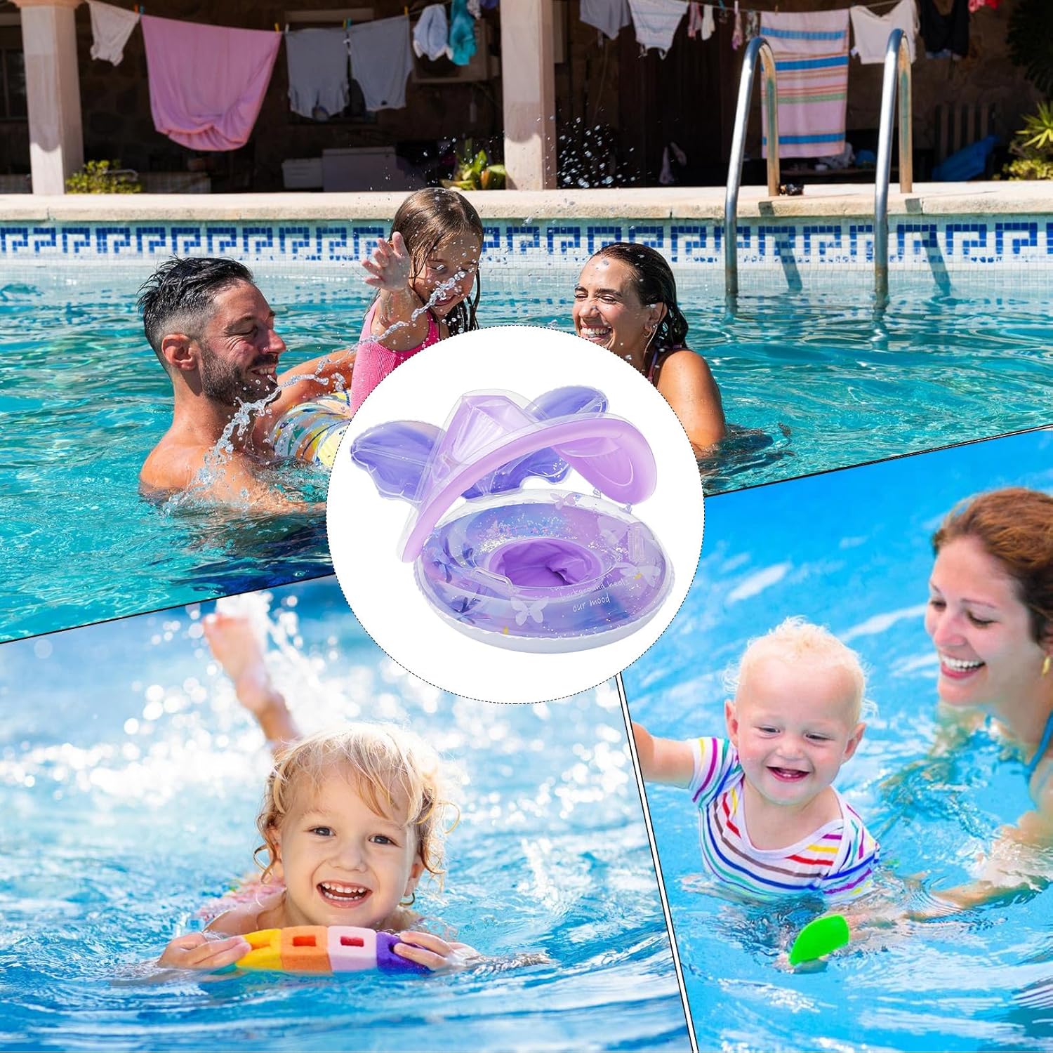 Comodo seggiolino galleggiante: realizzato con un sedile ergonomico delicato sulla pelle, questo galleggiante incoraggia la fiducia dell'acqua nei bambini, con un design scintillante a farfalla migliorato da paillettes per un gioioso gioco in piscina Stabilità avanzata: la base spessa e impermeabile e il sistema di stabilità del sedile trasversale assicurano un galleggiamento sicuro, con molteplici funzioni di sicurezza, tra cui una valvola di gonfiaggio affidabile per l'uso del galleggiante della piscina dei bambini Comoda ombra. Il baldacchino rimovibile con blocco UV si adatta ai cambiamenti climatici senza sforzo, garantendo una facile rimozione o fissaggio, proteggendo i bambini dai dannosi raggi solari durante il tempo in piscina Comfort portatile: dotato di una forma compatta arrotolata e di una borsa inclusa, questo galleggiante per piscina per bambini offre una comoda conservazione e una rapida usabilità, supportato da doppi canali d'aria per un gonfiaggio senza sforzo Seduta sicura e adattabile: la seduta a forma di "+" combinata con un'innovativa valvola di sicurezza salvaspazio fornisce un supporto regolabile man mano che il bambino cresce, adattandosi perfettamente alle fasi di sviluppo tra la prima infanzia e gli anni del bambino in ambienti di gioco in acqua