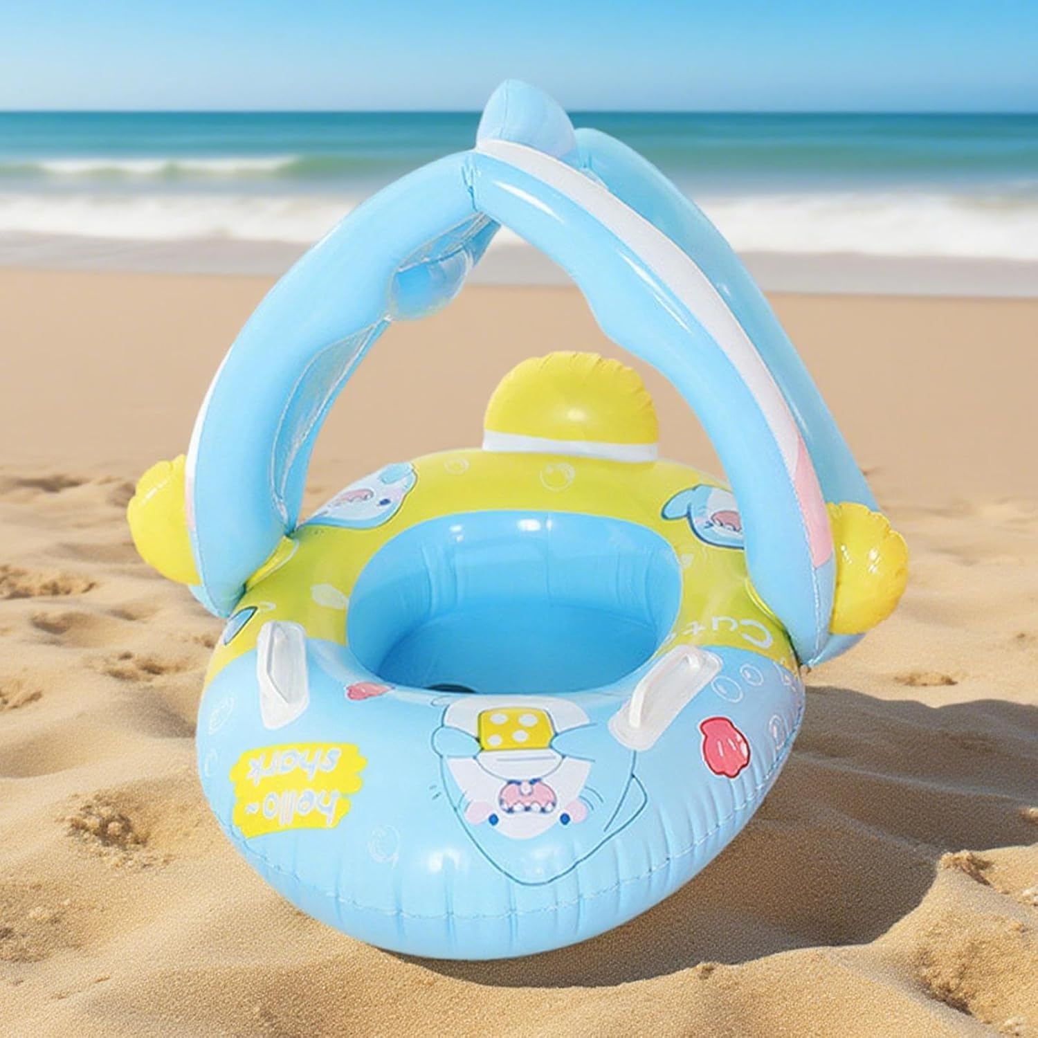 Design Compatto Ripiegabile: Unisce portabilità da viaggio a profilo ripiegato compatto, con tecnologia di gonfiaggio veloce e materiali selezionati per adattabilità e prestazioni durature nel Stabilità forma a corno: Morfologia speciale a barca-corno con dettagli da mascotte e curvature anatomiche, assicura corretta migliorando l'estetica acquatica. Centro di galleggiamento equilibrato per un galleggiamento stabile e rilassante Sicurezza Ottimizzata: Cuscino rinforzato e galleggiamento perimetrale abilitano supporto stabile a 360 gradi, minimizzando rischi di ribaltamento mentre garantiscono comfort multidirezionale per un'esperienza di galleggiamento sicura. Compagno Acquatico Adattabile: Galleggiante con design studiato per accompagnare la crescita del bambino dai 6 ai 36 mesi, offre supporto costante durante il nuoto garantendo sicurezza in acqua grazie alla struttura stabilizzante Blocco Raggi UV: Canopy angolo-regolabile protegge dalle radiazioni UV creando un'atmosfera rinfrescante, garantendo comfort durante il gioco in acqua con la funzione ombra rimovibile e adattabile