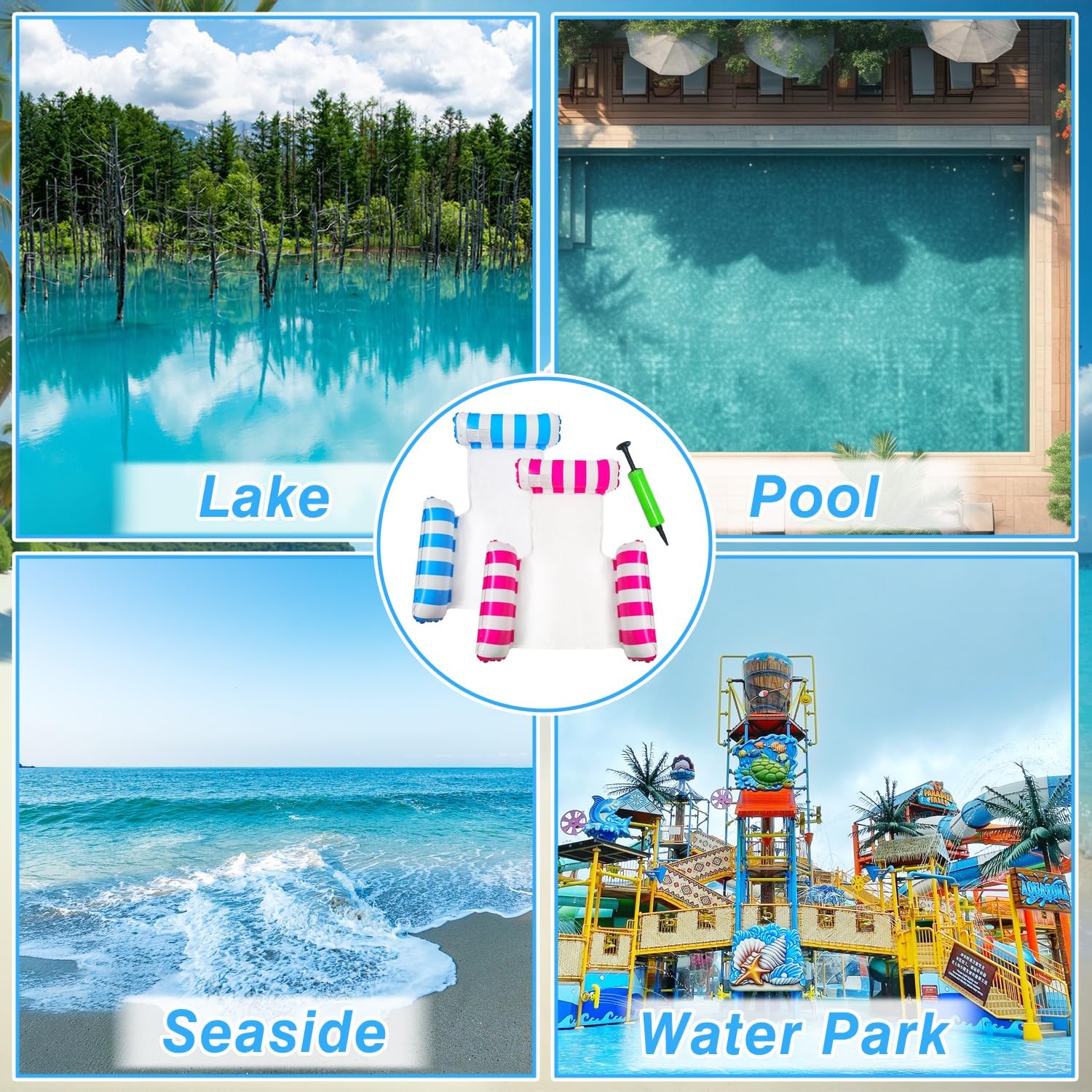 Design unico: la nostra sedia gonfiabile è dotata di 3 cuscini gonfiabili e un morbido sedile in rete che sostiene la testa, la schiena e le mani, ti mantiene stabile in acqua e ti permette di goderti il clima fresco d'estate. Materiale premium: questa amaca acquatica è realizzata in PVC ecologico di alta qualità e rete morbida e confortevole. È robusto e durevole, non si deforma facilmente, sicuro e non tossico e ha una forte capacità di carico. Puoi sdraiarti in sicurezza sulla poltrona sospesa e rilassare il corpo e la mente. Misura adatta: riceverai 2 galleggianti gonfiabili e 1 pompa a mano. Dimensioni: 110 x 100 cm Materasso ad acqua multifunzione: questa amaca ad acqua ha 4 funzioni in 1. Può essere utilizzata non solo come amaca acquatica, ma anche come poltrona lounge, lettino galleggiante per piscina e divano gonfiabile, che soddisfa perfettamente le diverse esigenze. Facile da riporre: la poltrona sospesa è facile da usare. Gonfialo semplicemente in pochi minuti con la pompa gonfiabile inclusa. Allo stesso tempo, la sedia gonfiabile gonfiata può essere piegata, il che è molto comodo per riporla e trasportarla