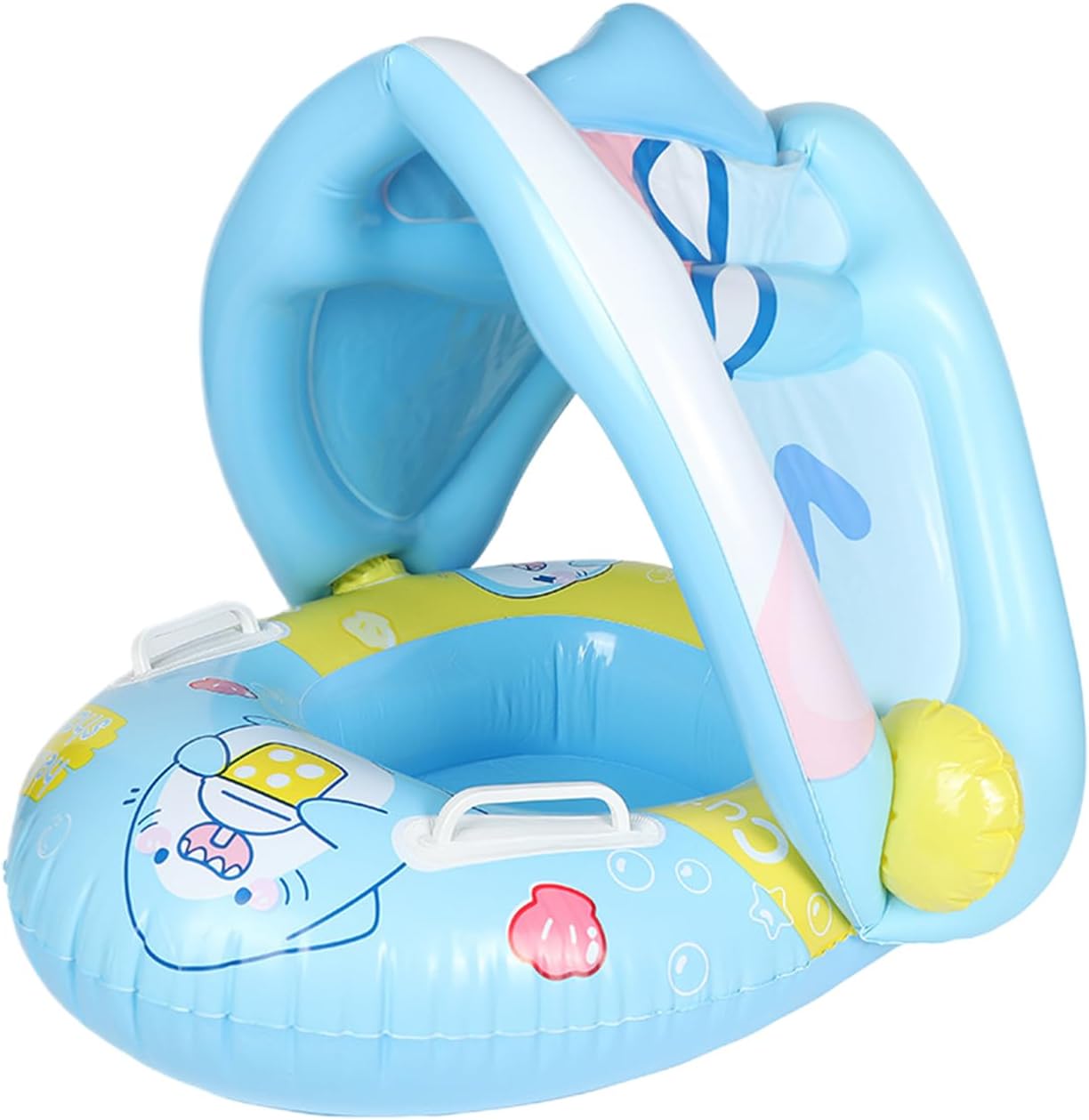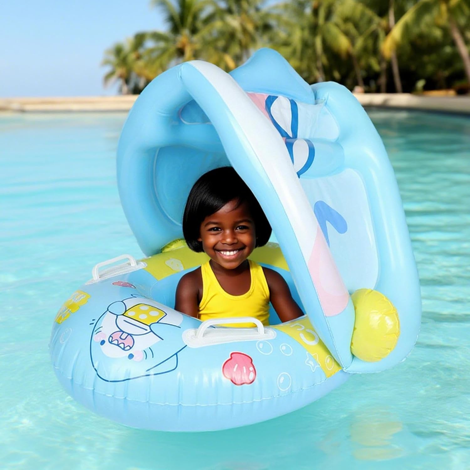 Portabilità per Viaggi: Progettato per trasporto agevole, offre profilo ripiegato compatto e gonfiaggio rapido, garantendo praticità in viaggio con materiali flessibili per resistenza e comfort del bebè Stabilità forma a corno: Morfologia speciale a barca-corno con dettagli da mascotte e curvature anatomiche, assicura corretta migliorando l'estetica acquatica. Centro di galleggiamento equilibrato per un galleggiamento stabile e rilassante Protezione Avanzata: Il galleggiamento perimetrale lavora con il cuscino rinforzato per offrire supporto stabile a 360 gradi, prevenendo efficacemente rischi di ribaltamento e assicurando prestazioni multidirezionali consistenti. di Supporto Graduale: Progettato per adattarsi alle fasi di crescita dai 6 ai 36 mesi, combina sicurezza in acqua con struttura regolabile per un sostegno affidabile durante lo sviluppo infantile Protezione Solare Regolabile: Galleggiante per bebè con canopy versatile rimovibile che si regola per bloccare i raggi UV, garantendo un ambiente di gioco fresco e ombreggiato adattandosi perfettamente a diverse condizioni di luce solare