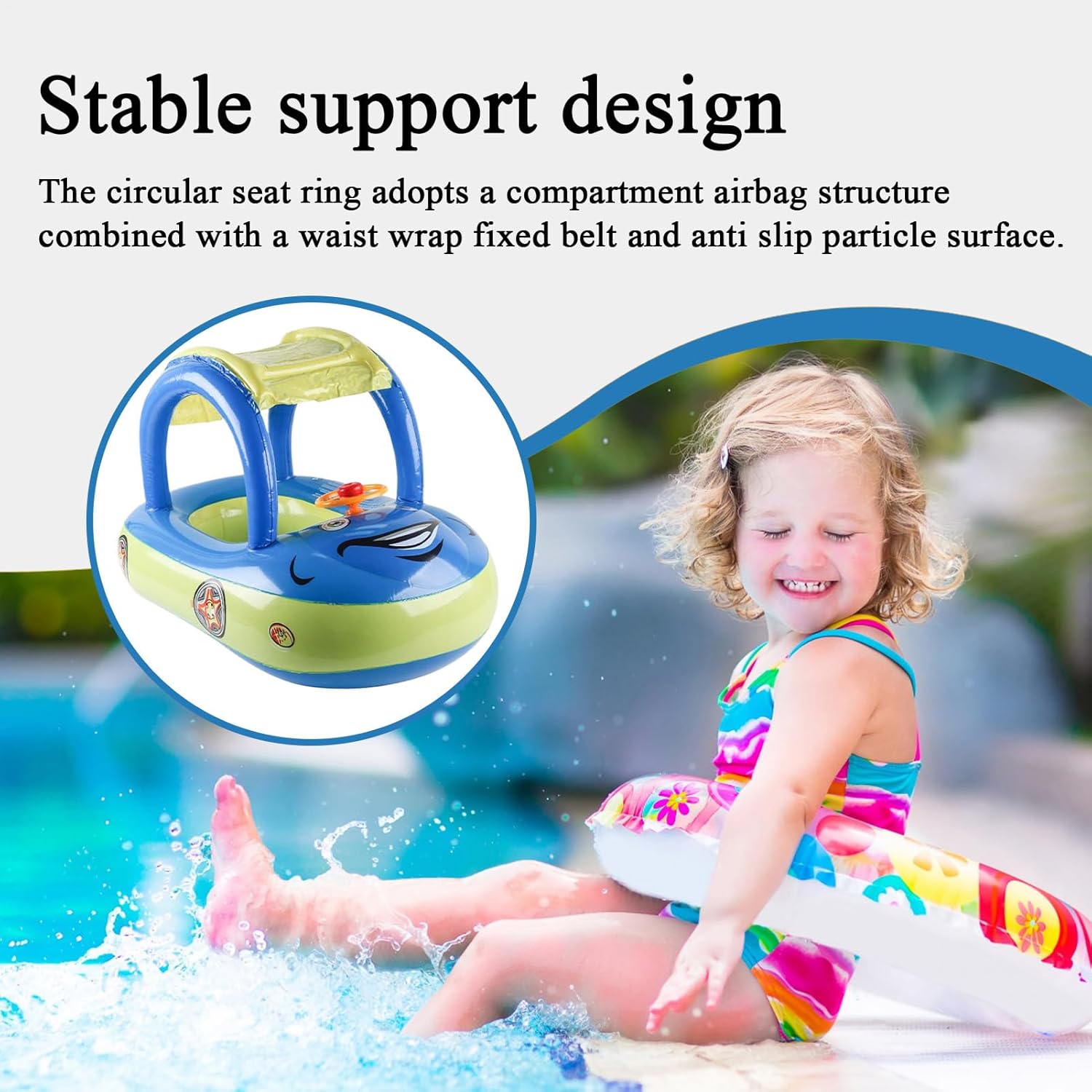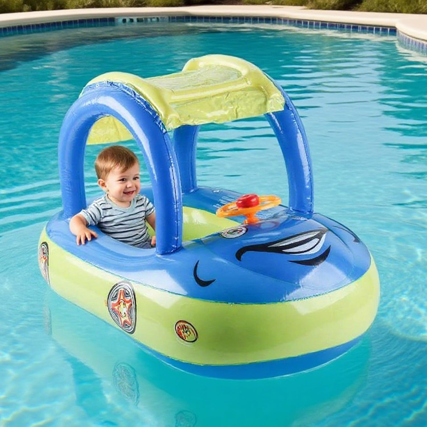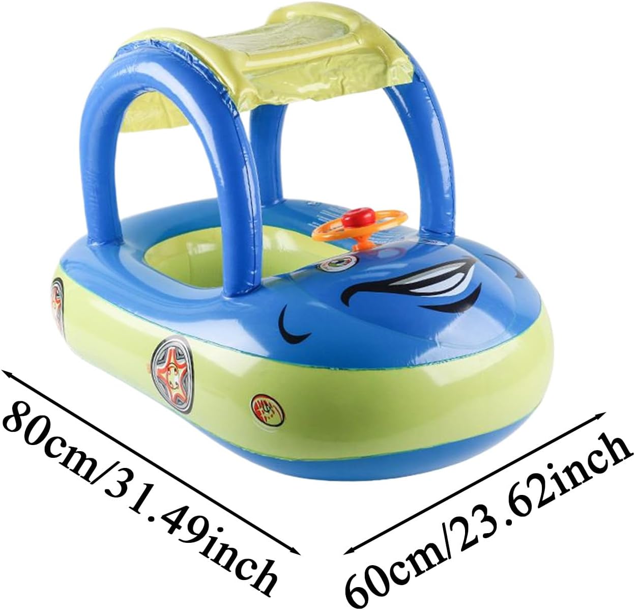 Baldacchino resistente ai raggi UV: il baldacchino regolabile a due strati assicura un'efficace schermatura dai raggi UV diretti, incorporando una rete ventilata per mantenere il flusso d'aria e offrire un comfort ottimale durante l'esposizione esterna prolungata Divertimento in acqua per giochi di ruolo: il design galleggiante a forma di barca con volante biometrico e suono incoraggia il gioco di ruolo, la coordinazione e offre un'esperienza di guida divertente per il bambino durante il tempo in piscina Sicurezza multi-camera: il galleggiante per piscina per bambini dispone di un anello a cuscino d'aria multi-camera, garantendo una seduta sicura e confortevole con una cinghia in vita sicura e superfici antiscivolo per una maggiore stabilità durante l'uso Design salva-spazio: galleggiante per piscina per bambini con baldacchino Caratterizzato da un design compatto con borsa per il trasporto e pistone unidirezionale per lo sgonfiaggio, il galleggiante per piscina per bambini assicura una facile conservazione e portabilità mantenendo la facilità d'uso durante le attività all'aperto Ampia applicazione: l'anello da nuoto promuove sia il gioco indipendente che l'interazione guidata attraverso un anello di traino per la guida dei genitori, ideale per l'uso in piscine, spiagge o parchi acquatici, offrendo una versatile compatibilità multi-scena