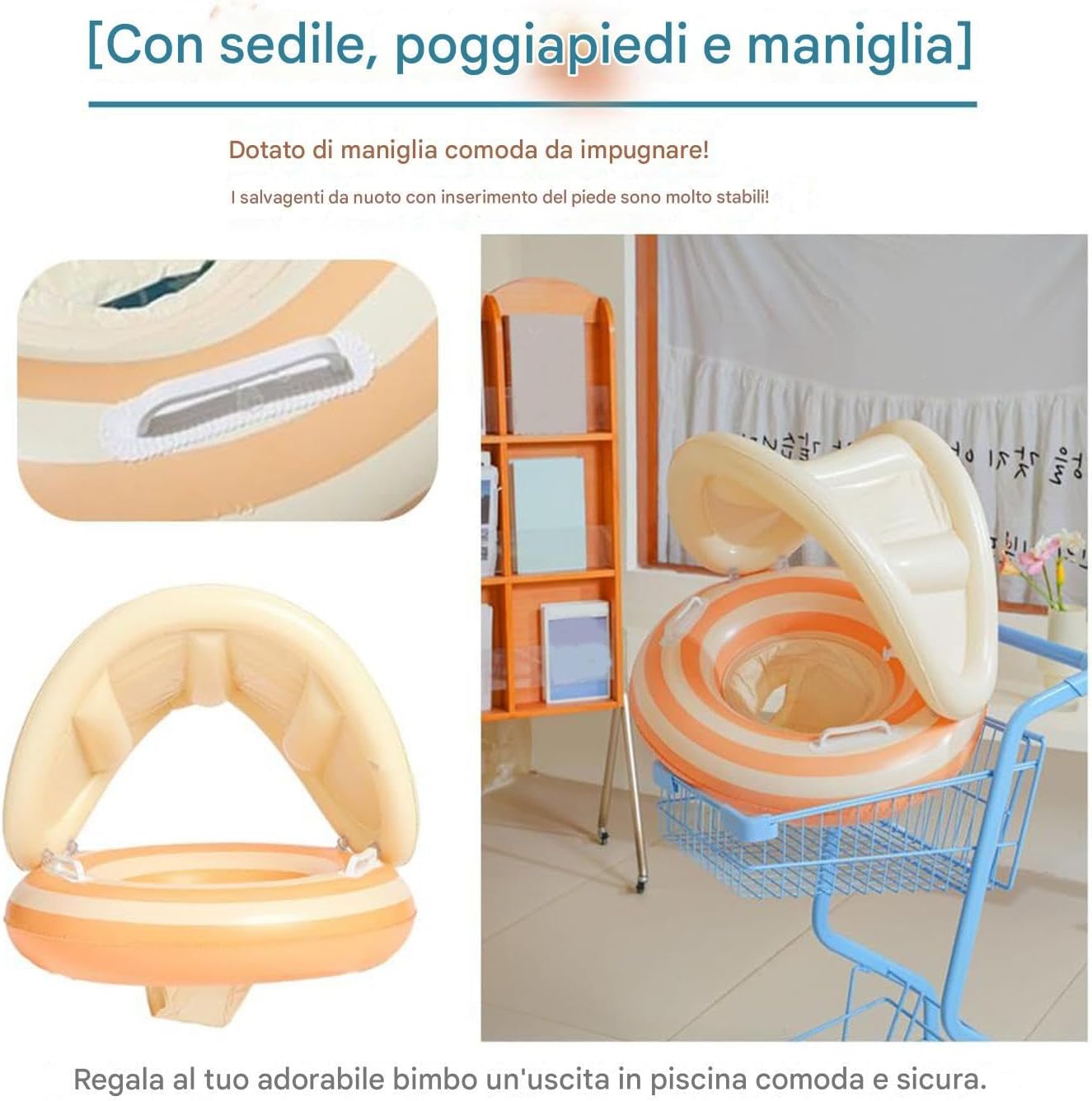 Resistenza nel : Progettazione durevole con materiali pregiati garantisce sicurezza e benessere del bebè in piscina, mantenendo l'efficacia della schermatura solare nel Intrattenimento Estivo: Progettato per bambini 1-4 anni, assicura attività acquatiche sicure ed è scelta diffusa per momenti familiari all'aperto nelle calde giornate di sole in piscina o lago Compagno di Galleggiamento: Combinazione di tecnologia anti-caduta, seggiolino stabile e maniglie antiscivolo assicura comfort e riduce efficacemente gli incidenti in piscina. Schermo UV Amovibile: Protezione solare staccabile progettata per regolare facilmente gli angoli di copertura offrendo affidabile difesa dai raggi e maggiore sicurezza per il bambino sotto il sole Artigianato Preciso: delicato e superfici uniformi assicurano esperienza affidabile per il bambino, con costruzione accurata per sicurezza e soddisfazione durante il bagno