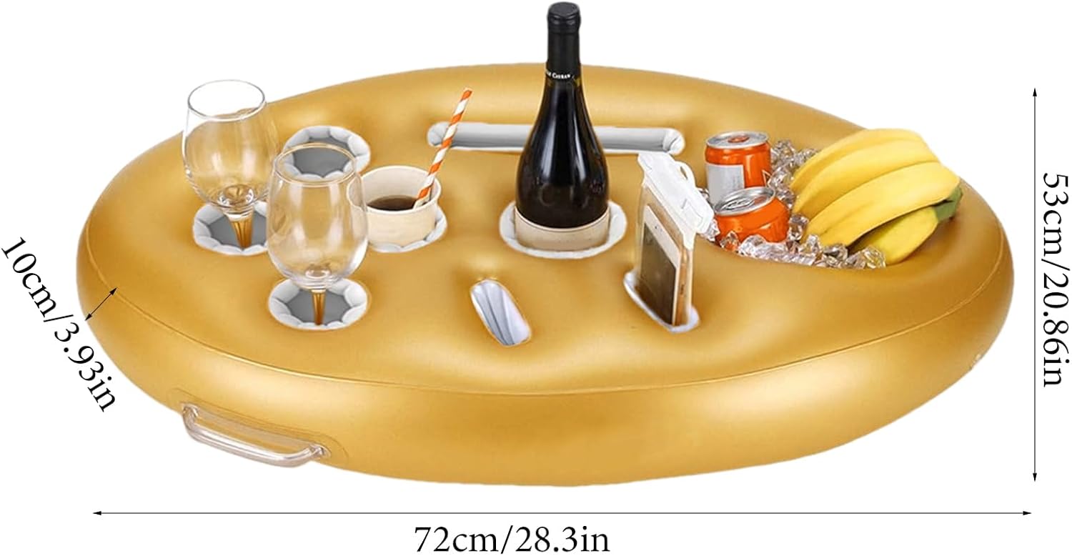 Conservazione multifunzionale: perfetto per eventi all'aperto, questo portabevande gonfiabile può contenere una grande capacità di bevande, snack e persino lettori musicali o telefoni con i suoi 9 fori. Adatto a tutti i tuoi must have per le feste. Semplice da riporre: con un semplice colpo o pompa, il nostro portabevande gonfiabile può essere facilmente gonfiato e poi piegato per riporlo senza problemi. Grazie al suo design salvavita, questo prodotto rimane stabile e galleggia sull'acqua. Forte e affidabile: costruito con robusto materiale in PVC, questo portabevande gonfiabile è affidabile e non si danneggia o si deforma facilmente, garantendo un uso a lungo termine. Facile da usare: migliora il divertimento di qualsiasi attività acquatica con il nostro portabevande gonfiabile con manici, perfetto come regalo estivo per familiari e amici. Fornisce intrattenimento per tutte le età e comodo da tirare, questo è un compagno indispensabile per feste in piscina e riunioni in spiaggia. Ampiamente usato: preparati a goderti le tue feste in piscina, le serate nella vasca idromassaggio e le riunioni in spiaggia con il nostro portabevande gonfiabile; mantieni le tue bevande a portata di mano aggiungendo un extra di divertimento e comodità.