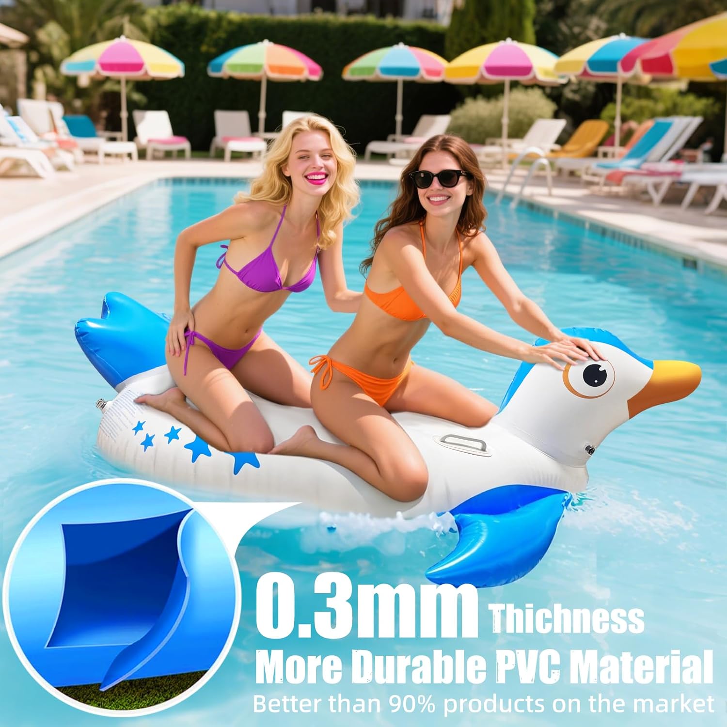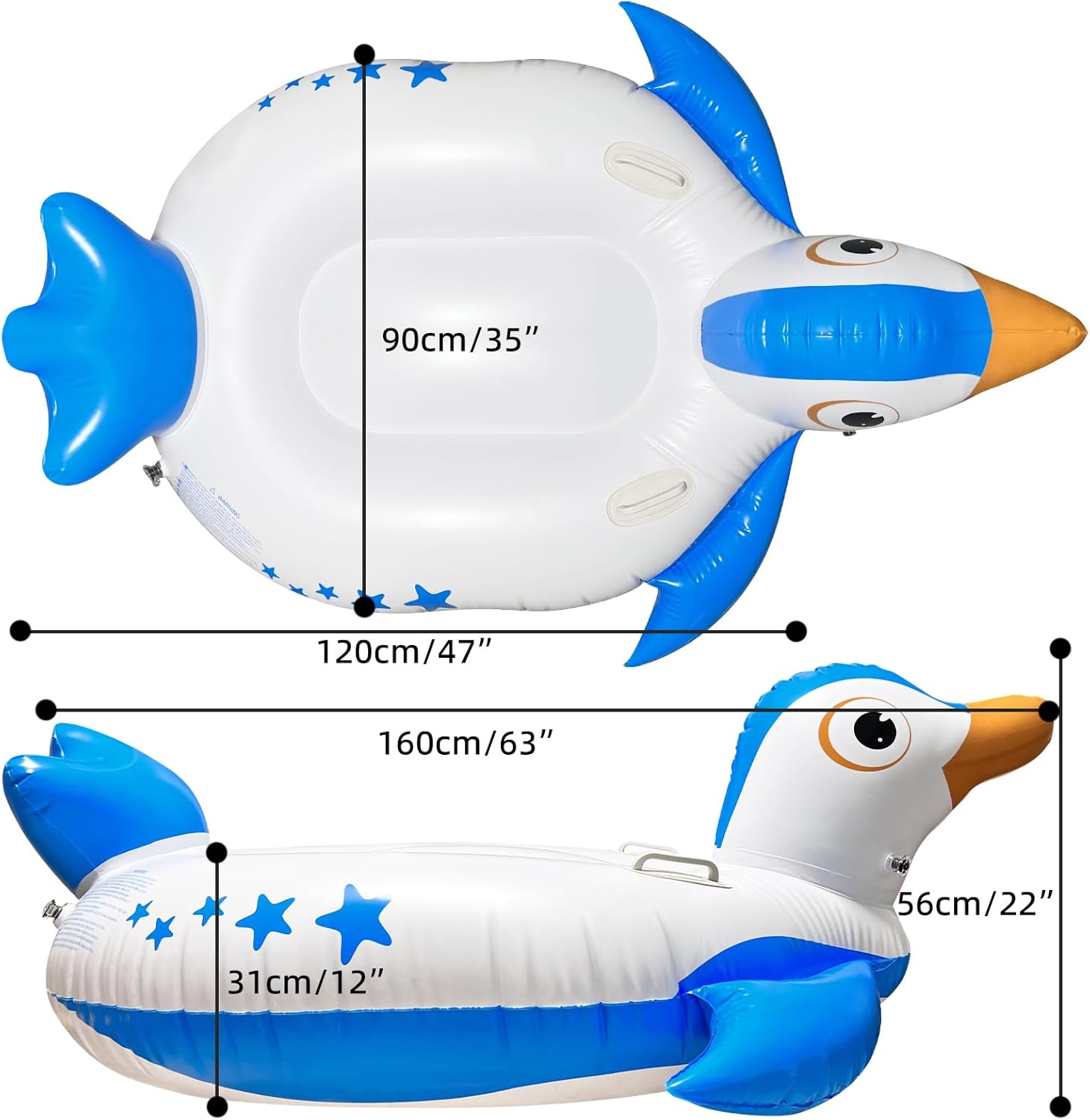 QUALITÀ PREMIUM E DIVERTIMENTO: il nostro galleggiante per piscina con pinguino è realizzato in PVC di alta qualità resistente alle forature. Ciò garantisce che possa resistere ai rigori dell'uso regolare in piscina, garantendo divertimento duraturo a te e alla tua famiglia. Che si tratti di bambini che sguazzano o si rilassano, questo galleggiante gonfiabile per piscina non ti deluderà. Adorabile design del pinguino: progettato per assomigliare a un simpatico pinguino, questo galleggiante per piscina non è solo un accessorio funzionale per la piscina ma anche visivamente accattivante. Il suo aspetto affascinante ti renderà sicuramente al centro dell'attenzione in piscina. Colori vivaci e caratteristiche dettagliate si aggiungono all'estetica generale, rendendolo un must per le feste. Comfort ottimale: questo galleggiante a forma di pinguino ha le dimensioni perfette, con spazio sufficiente per due persone contemporaneamente e può contenere fino a 400 libbre. Fornisce un comodo spazio di riposo permettendoti di muoverti intorno alla piscina. Che tu stia giocando o facendo un pisolino, questo adorabile galleggiante fornisce la piattaforma perfetta Gonfiaggio e sgonfiaggio facili: il galleggiante è dotato di tre valvole di gonfiaggio di alta qualità, ciascuna con una doppia valvola per un gonfiaggio facile e a prova di perdite e un gonfiaggio e sgonfiaggio rapidi. Puoi prepararlo rapidamente per l'uso e può essere facilmente riposto quando non viene utilizzato. Questa comodità lo rende ideale per la casa e i viaggi Sicuro e stabile: questo galleggiante per piscina è progettato pensando alla stabilità. Dotato di due maniglie a destra e a sinistra, ha una base ampia e una struttura bilanciata per evitare il ribaltamento in piscina. Inoltre, la superficie liscia garantisce che non vi siano spigoli vivi o punti ruvidi per evitare lesioni, offrendo un'esperienza di piscina sicura per adulti e bambini