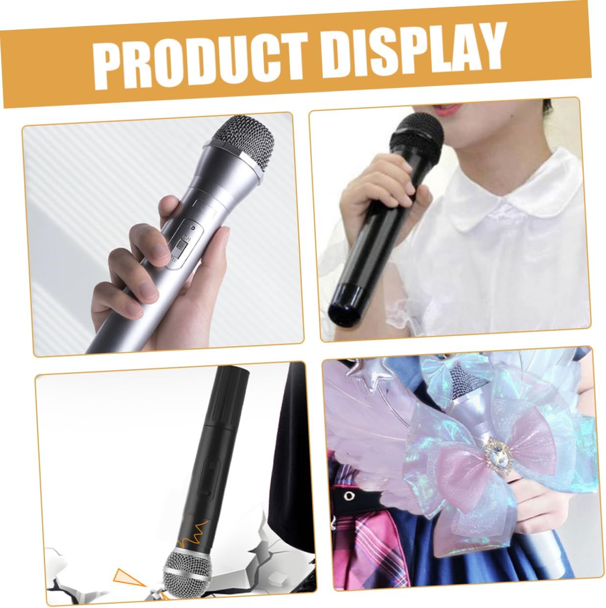 Microfono giocattolo - Incoraggia i bambini a esprimersi e ad acquisire sicurezza fingendo di essere artisti, Microfono per giochi di ruolo - Questo finto microfono da palco è adatto per feste in costume, feste di cosplay, spettacoli teatrali, feste di compleanno, riunioni di famiglia, eventi in classe e microfono per giochi di ruolo. Microfono di simulazione: il microfono giocattolo è adatto per il gioco quotidiano, spettacoli teatrali, feste e altre scene, come microfono da palco per feste: leggero e portatile, adatto per uso interno e sempre e ovunque. Il supporto per microfono può essere molto interessante, supporto per microfono di simulazione Accessori per microfono per feste - Realizzati in plastica, i supporti per microfono sono pratici e robusti per un uso prolungato, i supporti per microfono sono giocattoli da gioco in plastica